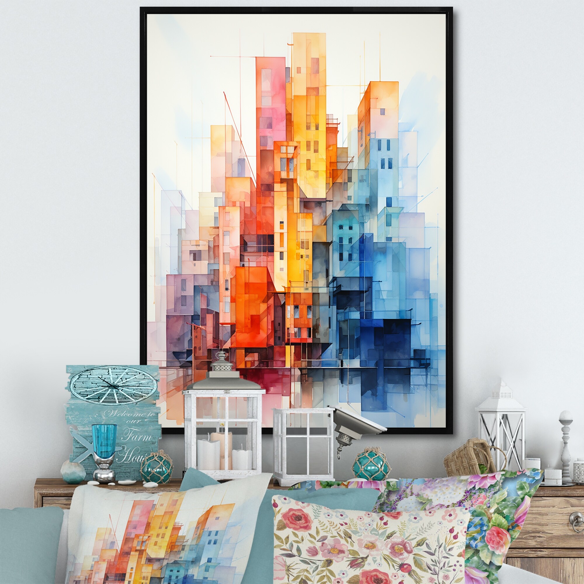 Designart "Cityscape Urban Color Symphony II" City Framed Wall Art Living Room