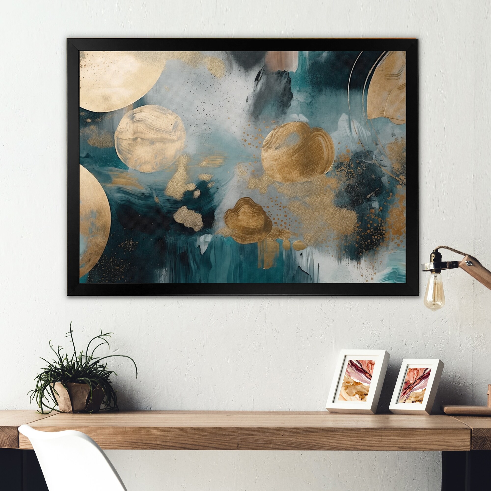 Designart "Gold Green Marbled Symphony Iii" Abstract Marble Framed Canvas Art Print
