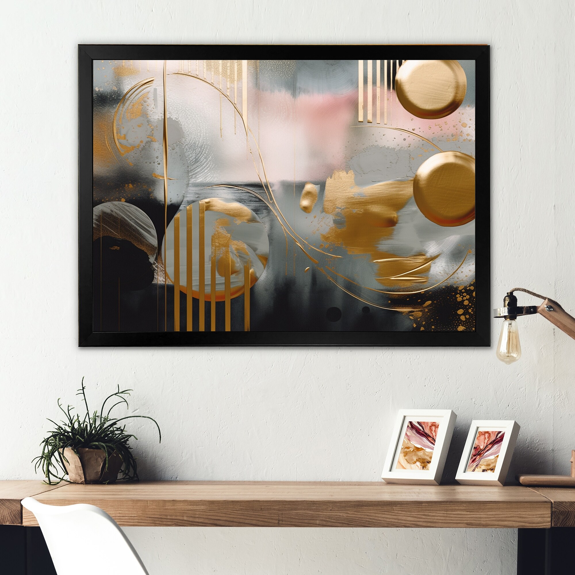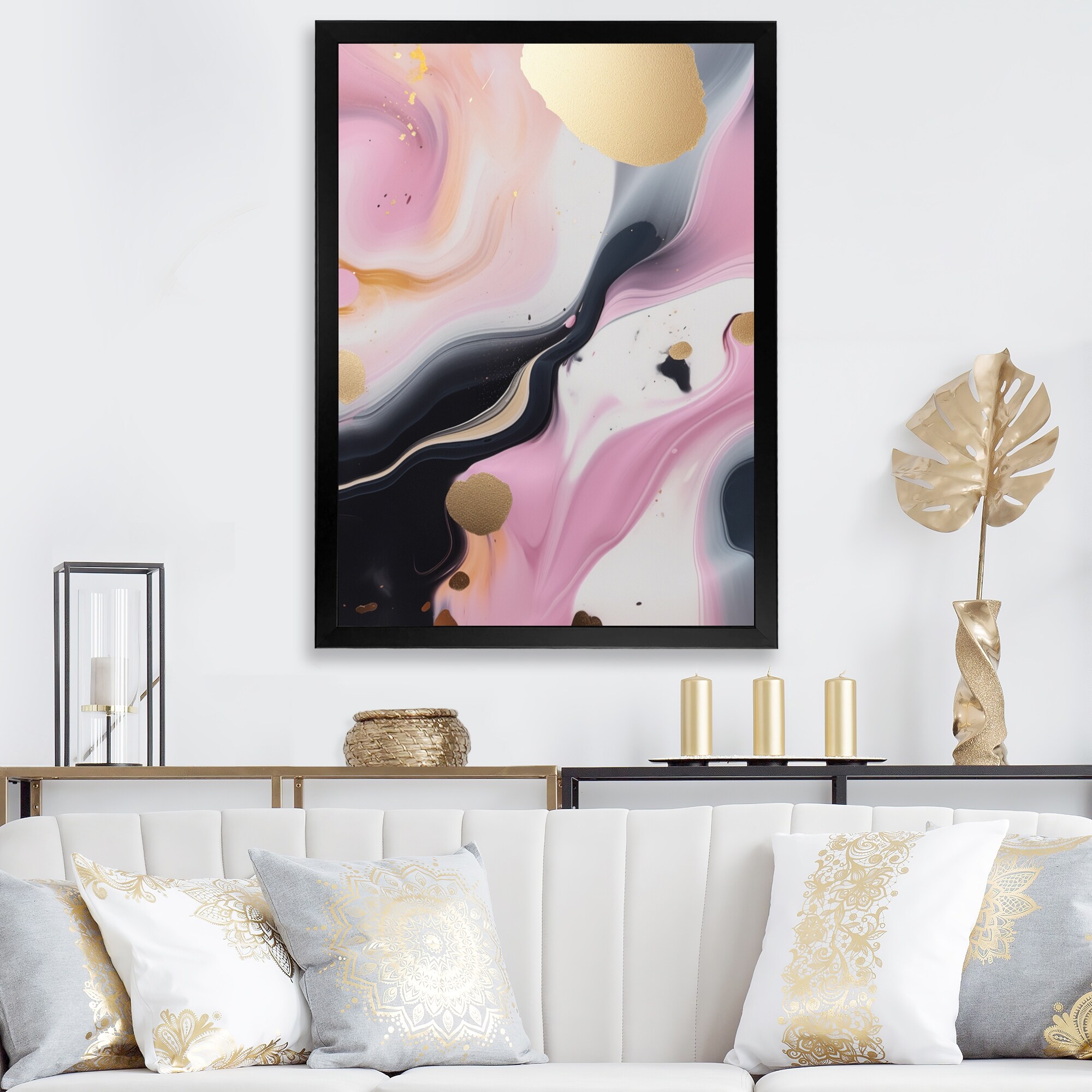 Designart "Pink And Gold Marble Symphony Ii" Abstract Marble Framed Wall Art for Living Room