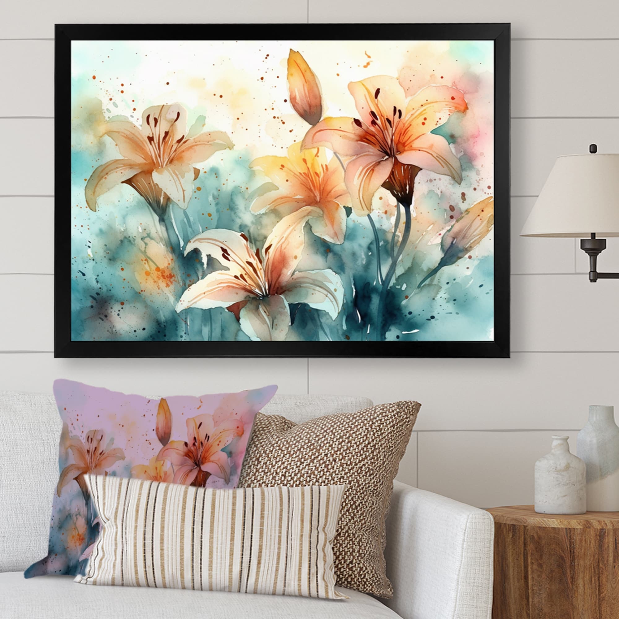 Designart "Orange Lily Symphony Ii" Floral Lily Framed Canvas Art Print