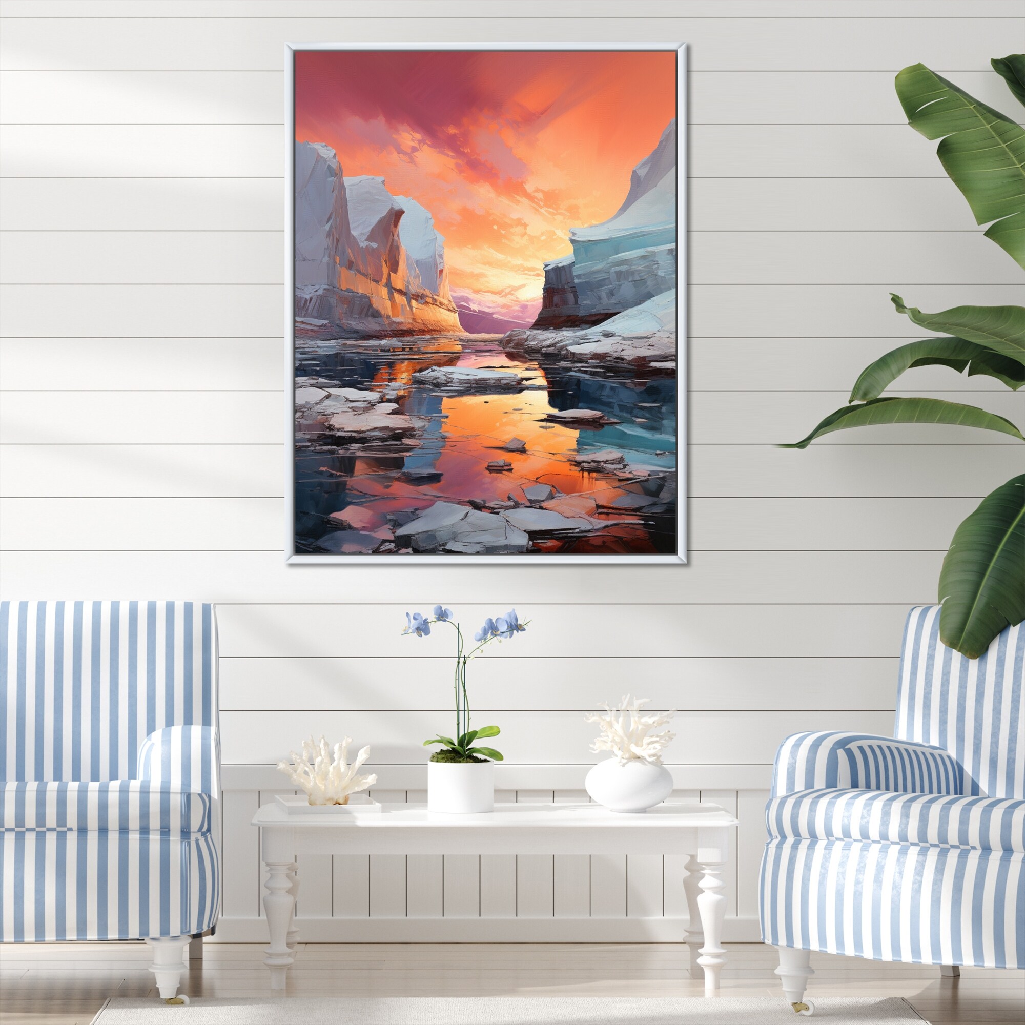 Designart "Coral Orange Iceberg Glacial Symphony III" Iceberg Framed Canvas Art Print