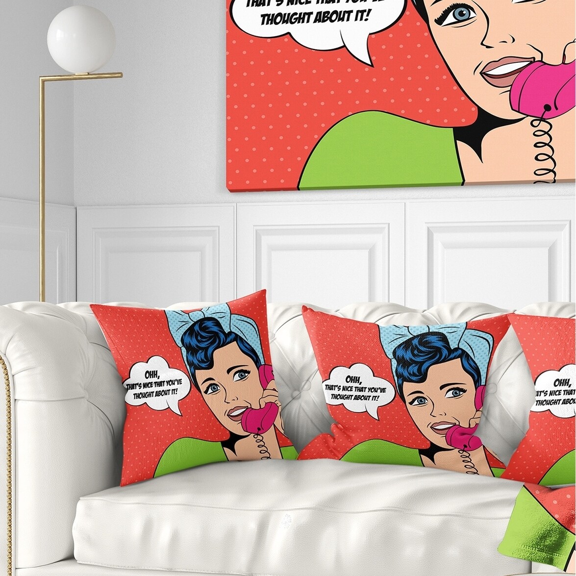 Designart 'Woman Talking on Phone' Abstract Portrait Throw Pillow