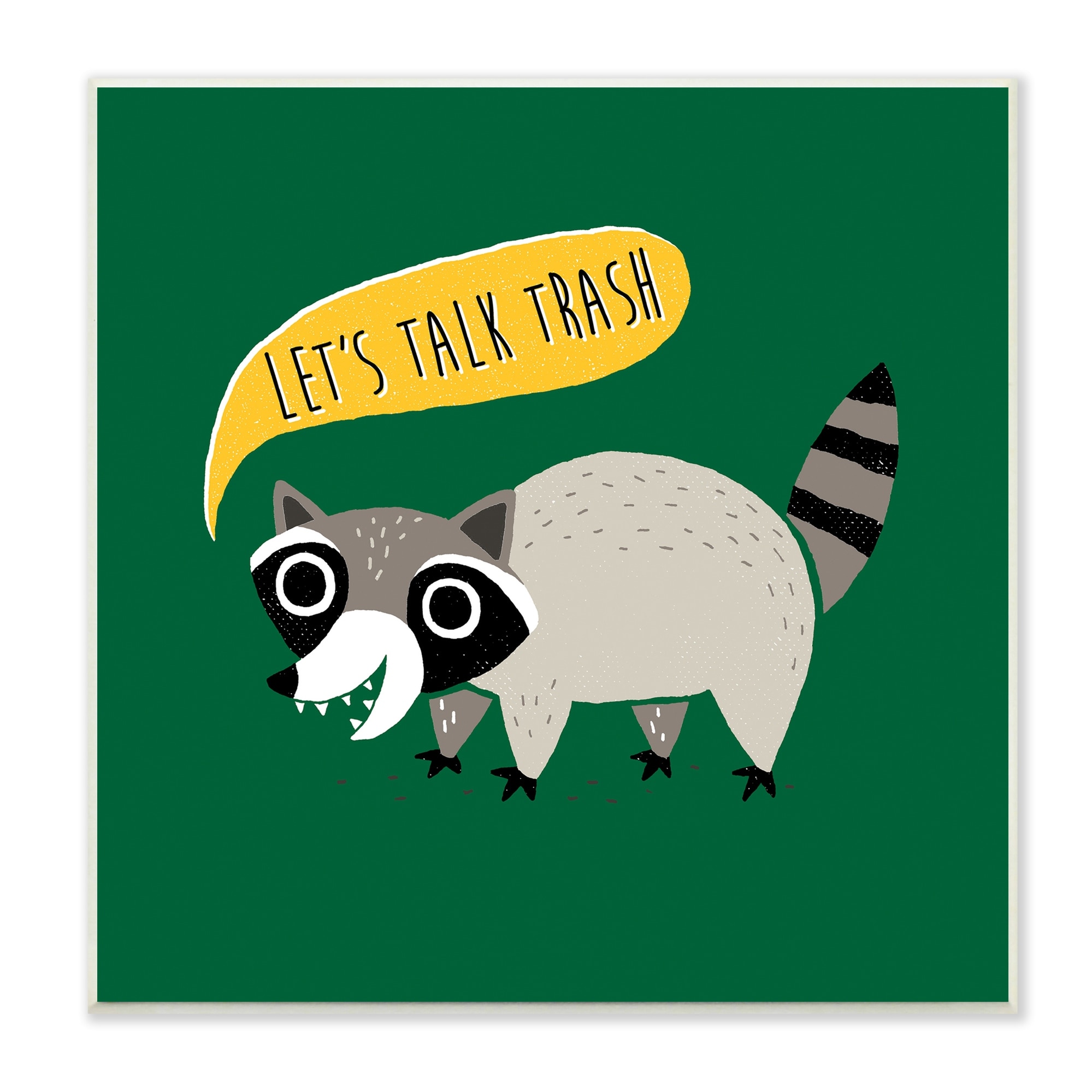 Stupell Let's Talk Trash Phrase Witty Raccoon Saying Wood Wall Art - Green