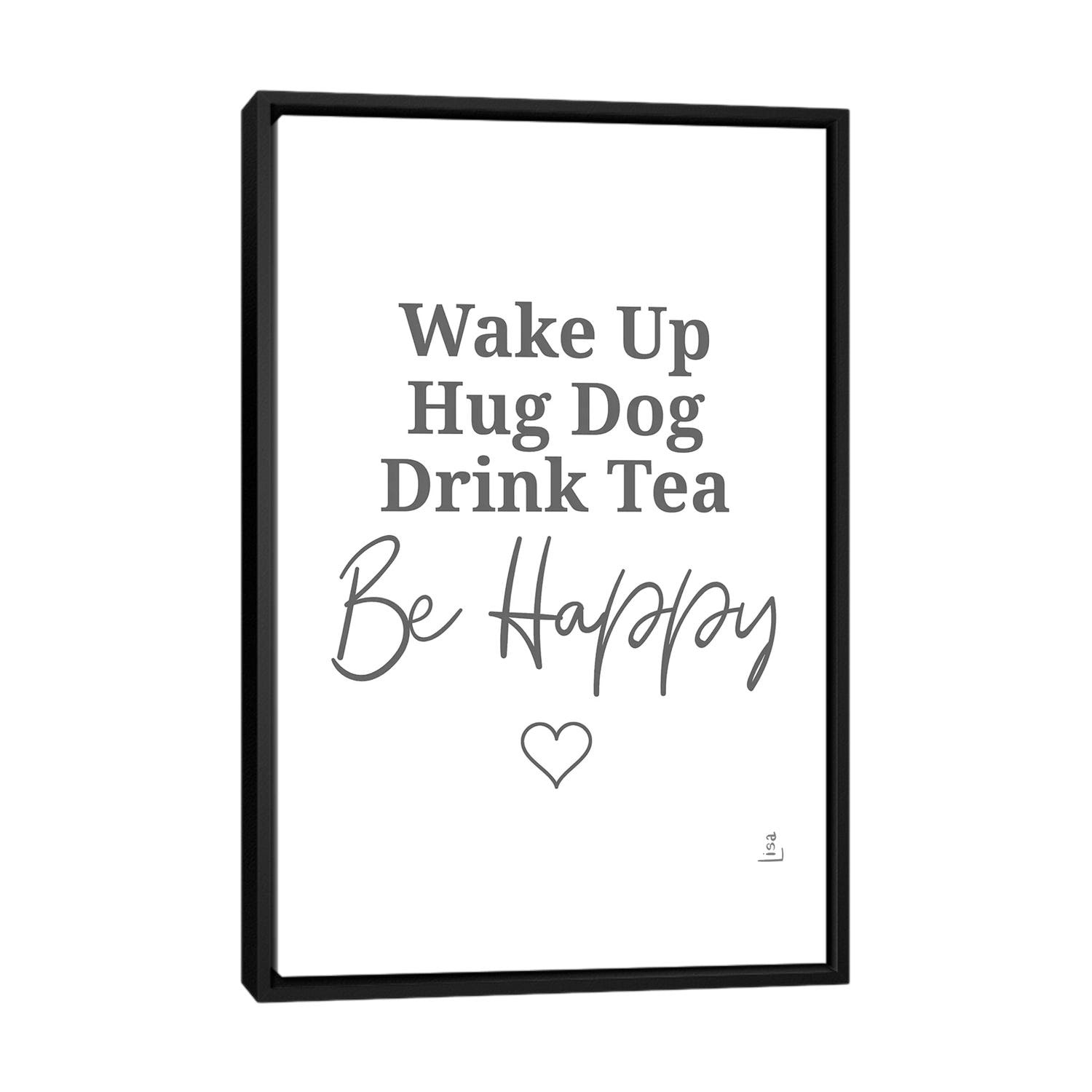 iCanvas "Drink Tea Be Happy" by Printable Lisa's Pets Framed