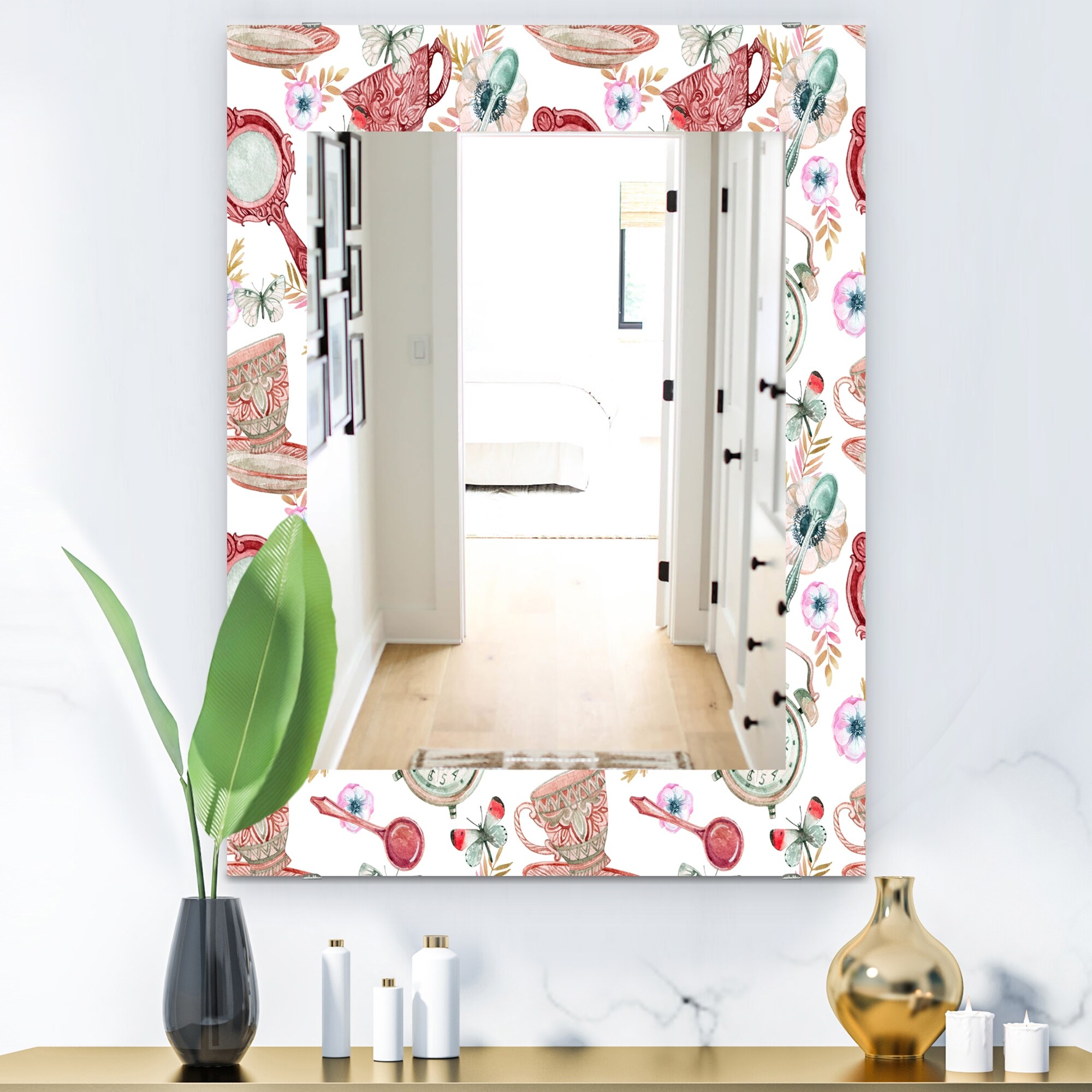 Designart 'Watercolor Tea Pattern' Modern Mirror - Printed Wall Mirror