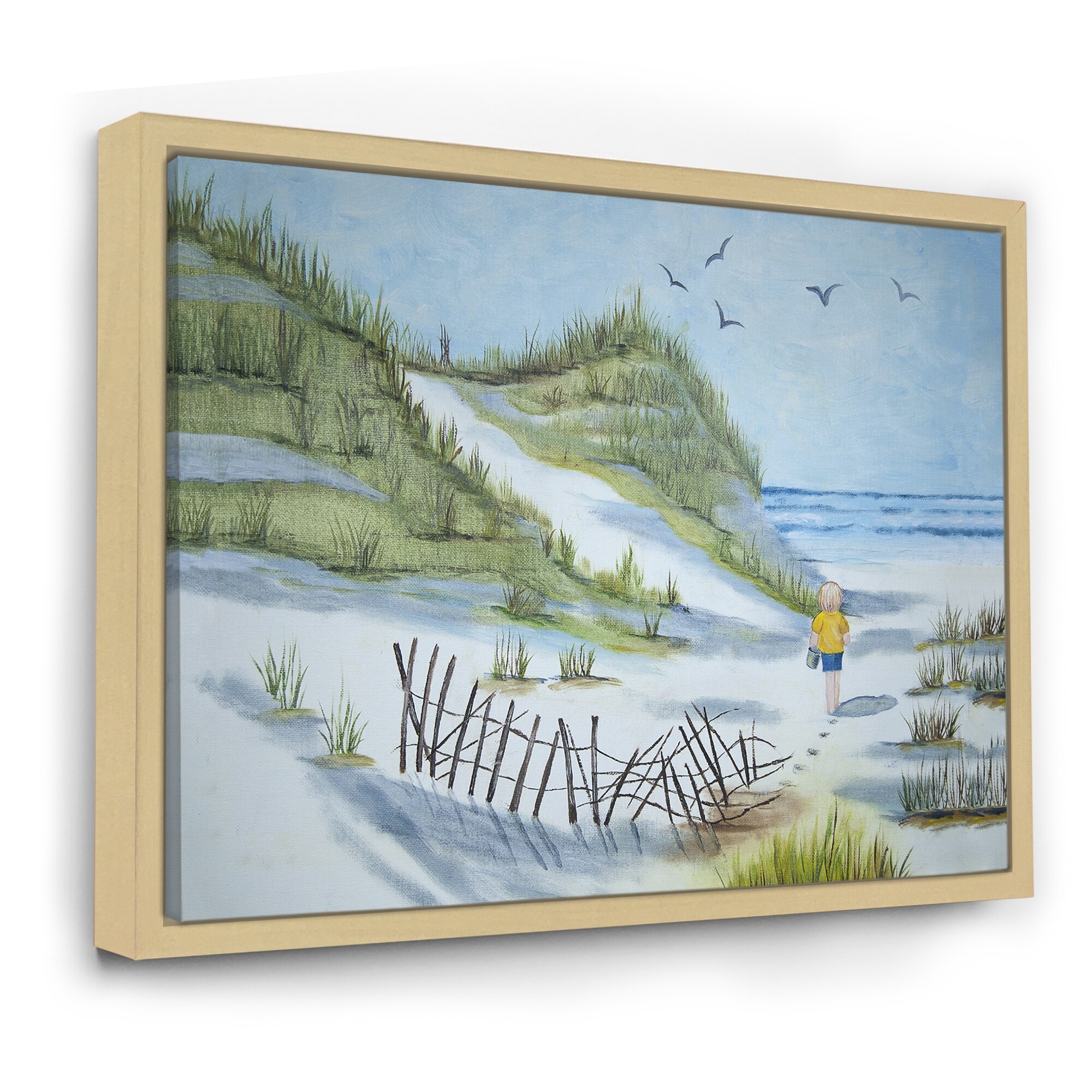 Designart "Child Walking the Beach" Nautical & Coastal Framed Canvas Wall Art Print