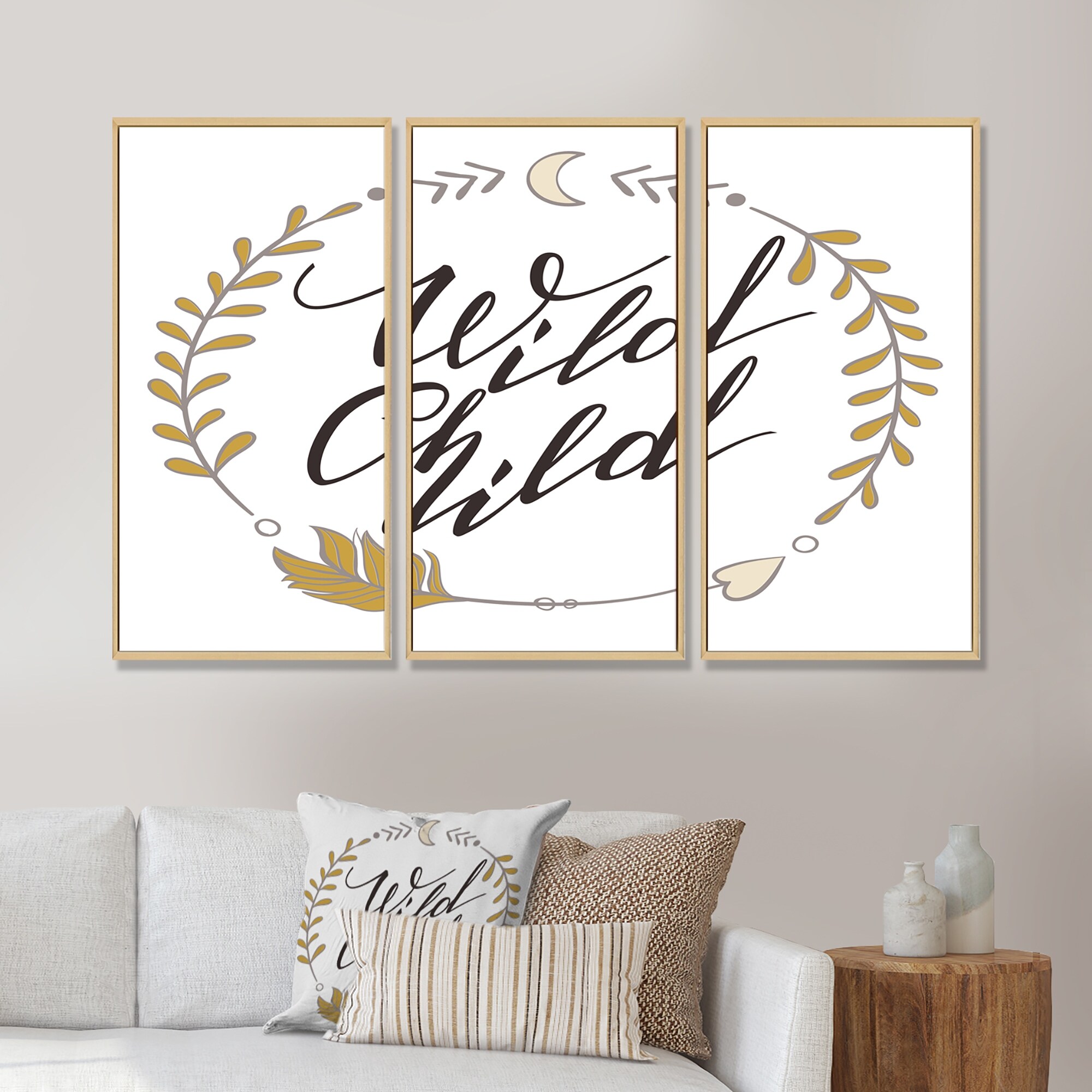 Designart "Wild Child" Traditional Framed Canvas Wall Art Print Set of 3 - 4 Colors of Frames