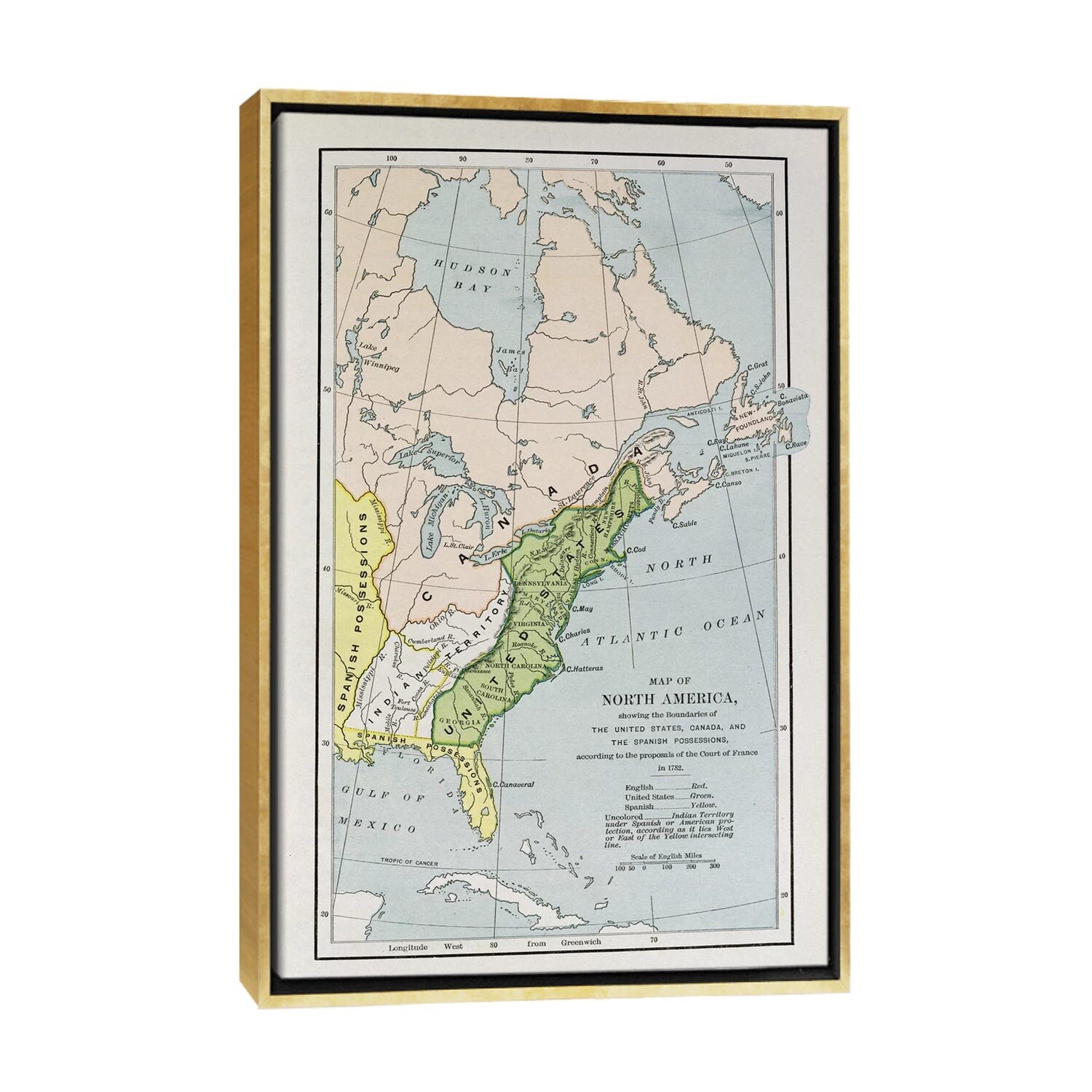 iCanvas "Map Of North America Showing Possession Boundaries" by English School Framed Canvas Print