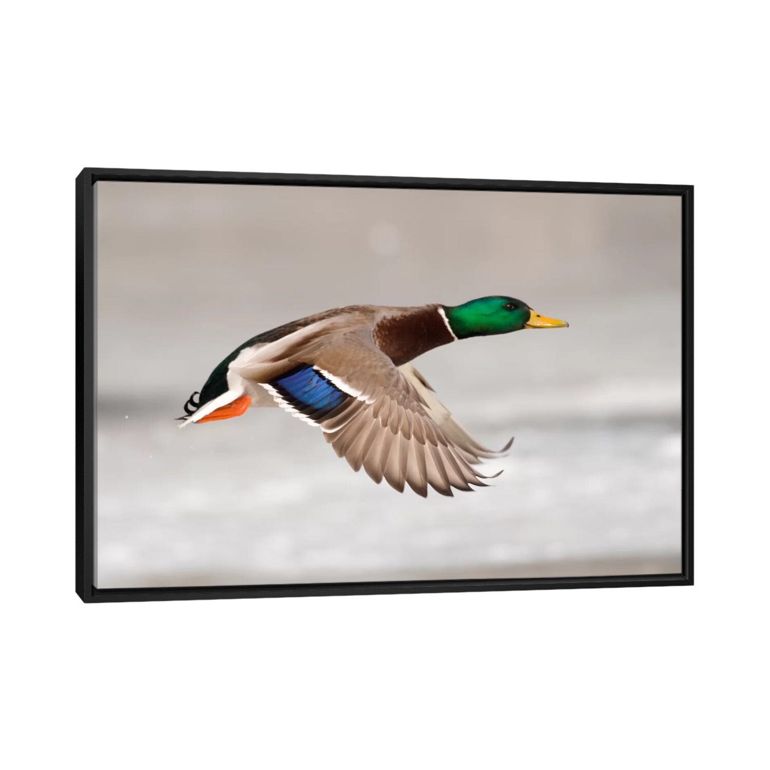 iCanvas "Mallard Male Flying Showing Speculum Feathers on Wing, Belle Isle Park, Michigan" by Steve Gettle
