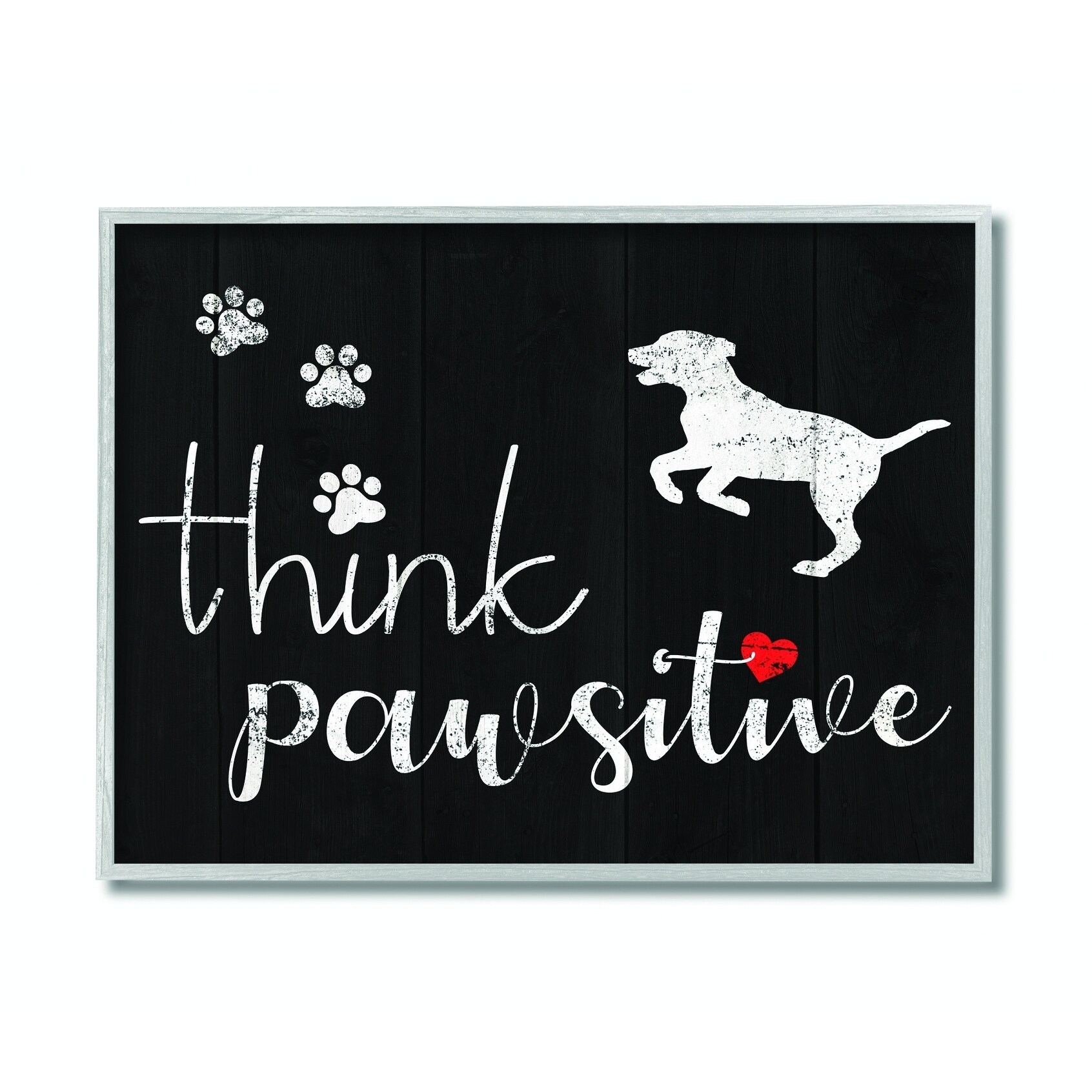 Stupell Industries Think Positive Dog Pet And White Word Design Framed Wall Art, Design by Daphne Polselli