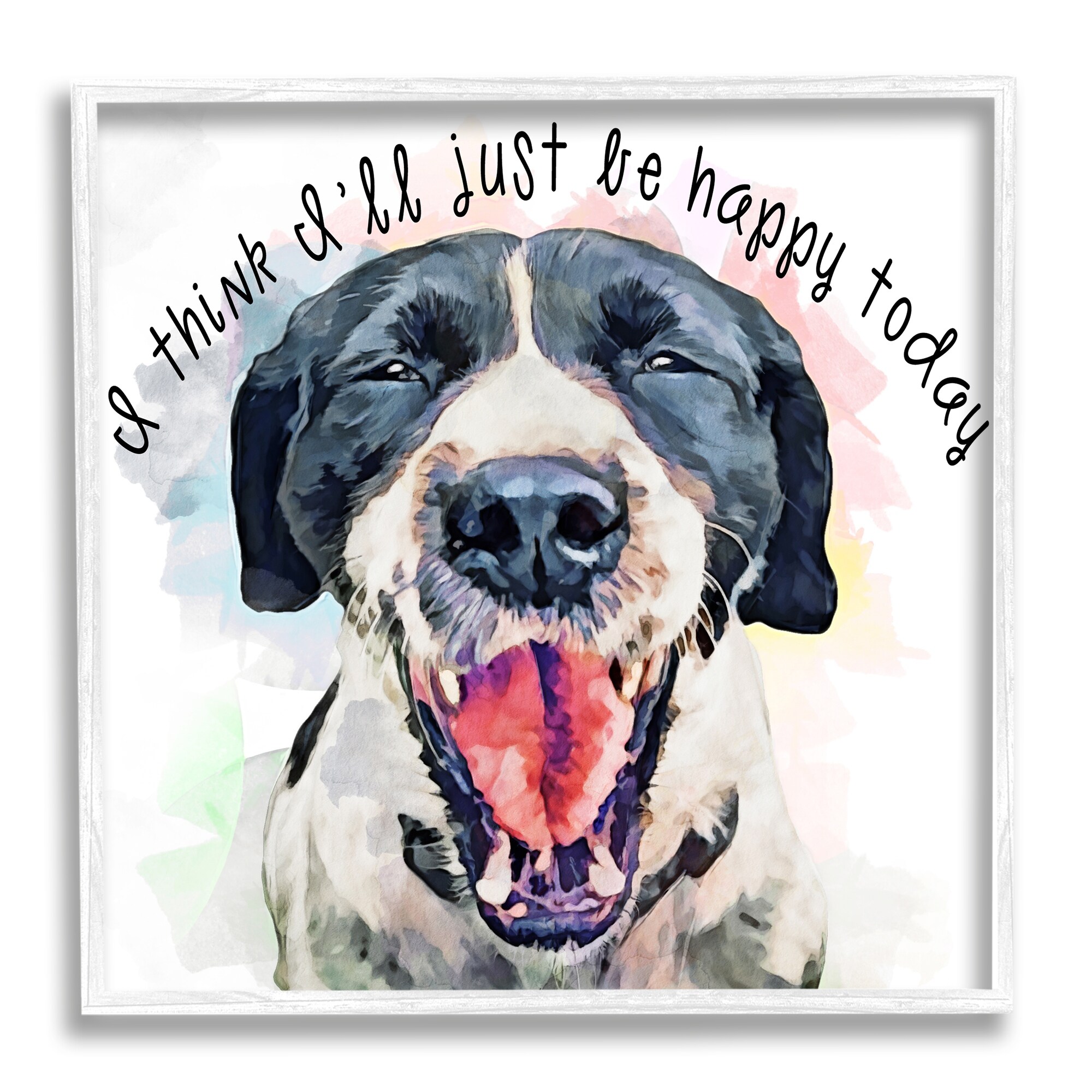 Stupell Industries Think I'll Just Be Happy Today Dog Smile Framed Giclee Art by Kim Curinga