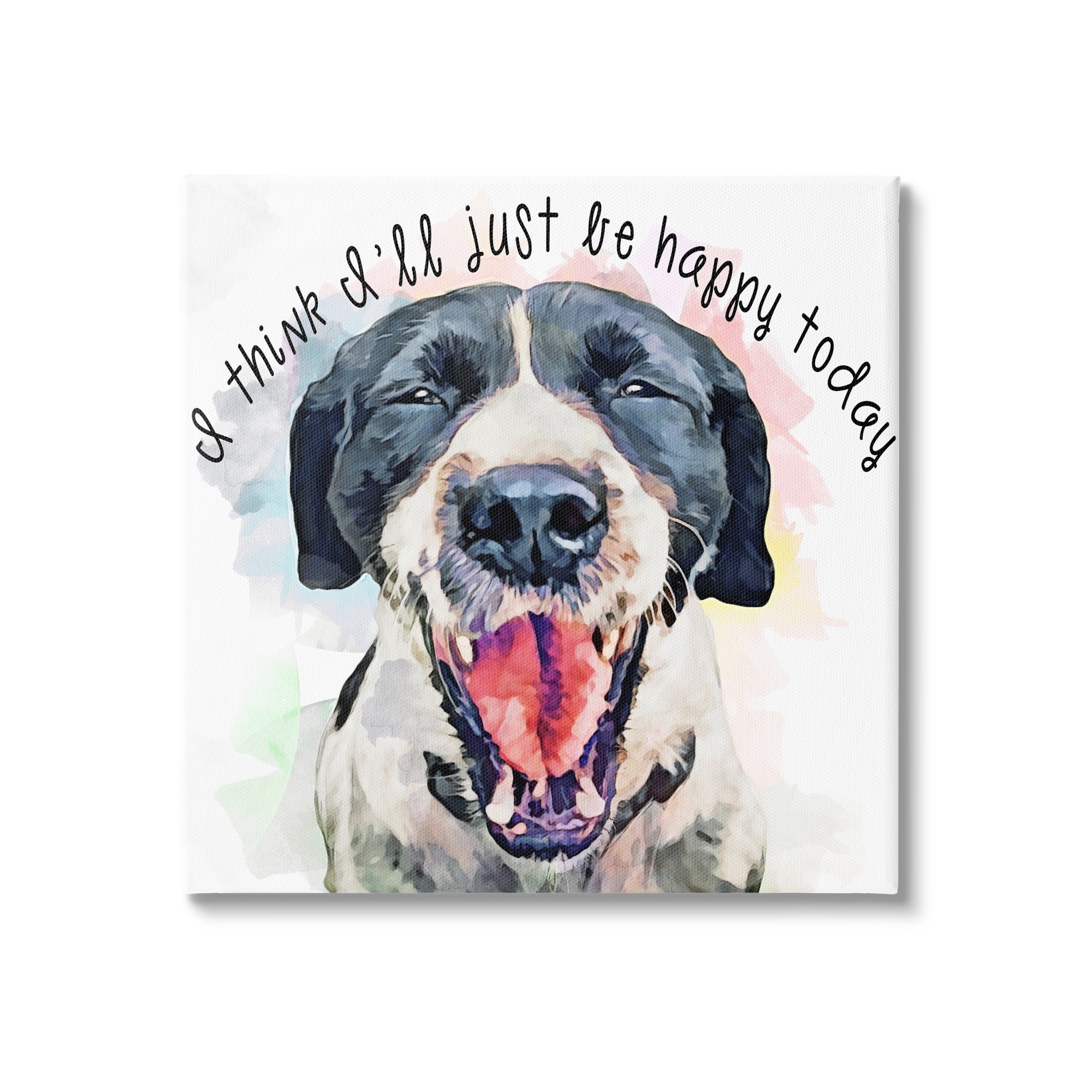 Stupell Industries Think I'll Just Be Happy Today Dog Smile Canvas Wall Art by Kim Curinga