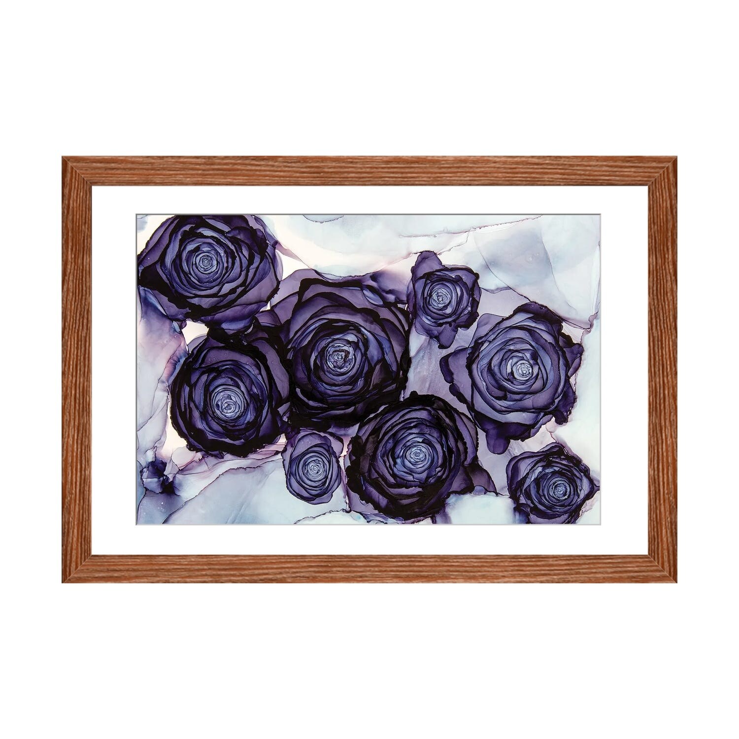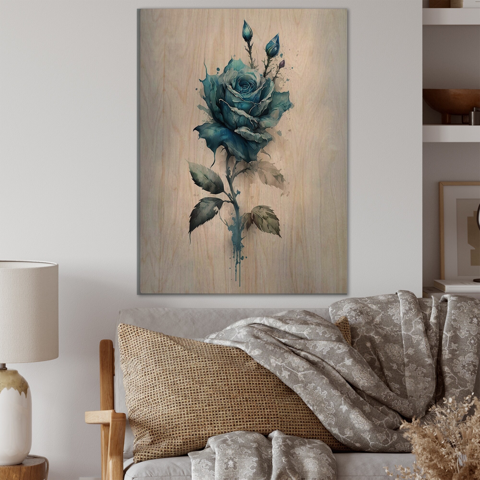 Designart 'Blue Rose With Thorns' Floral Rose Wood Wall Art - Natural Pine Wood