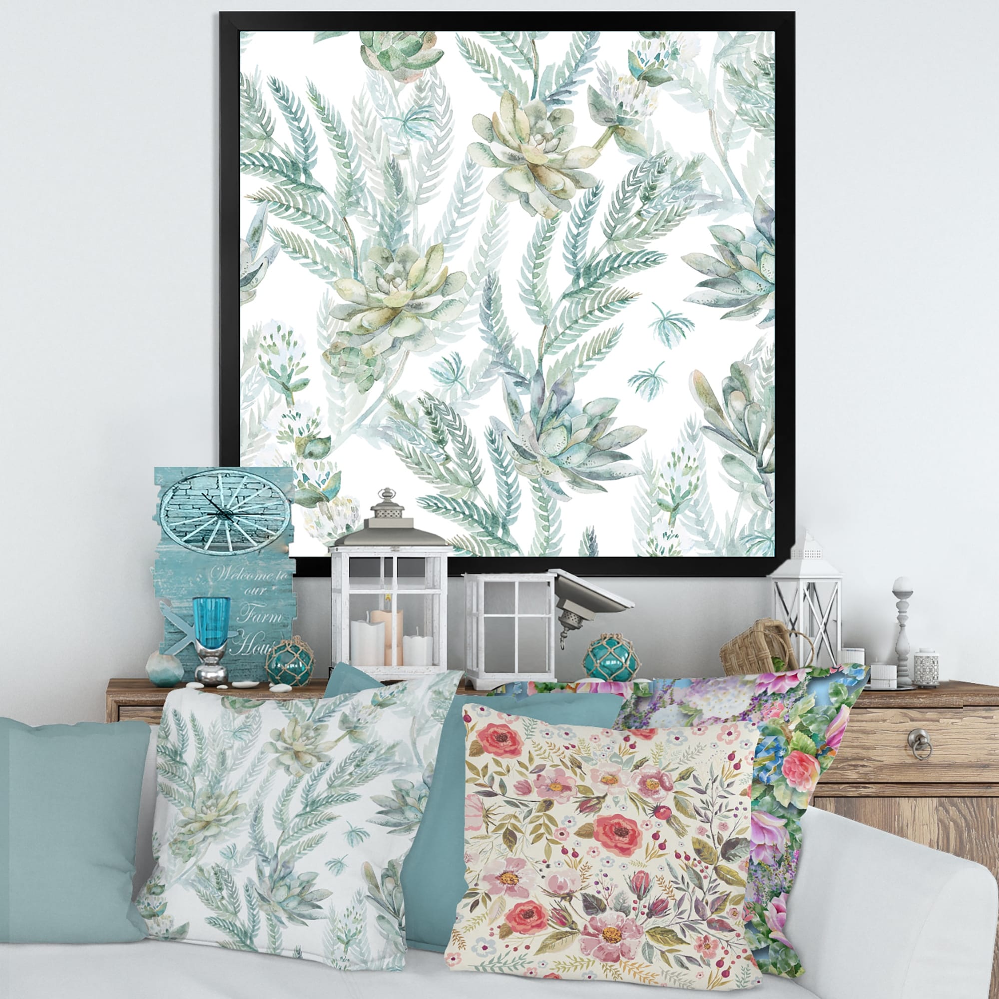 Designart "Floral Seamless Pattern Succulents Ferns Thorns" Farmhouse Framed Art Print
