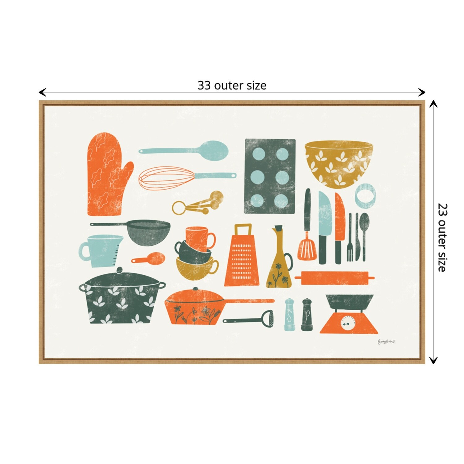 Retro Kitchen I by Becky Thorns (33 x 23 in.), Framed Canvas Wall Art Print - Sylvie Maple