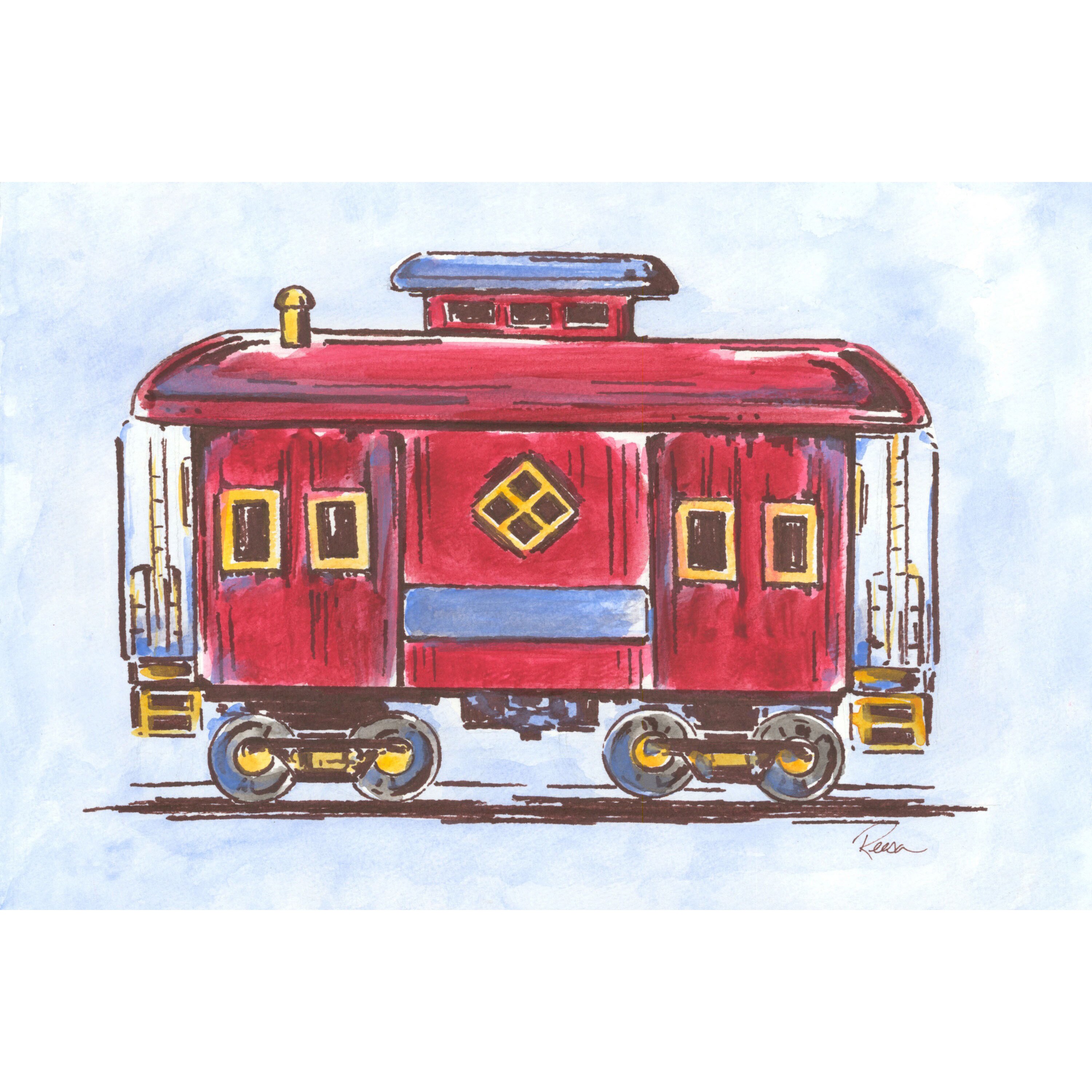 Marmont Hill - Handmade Red Train Print on Wrapped Canvas