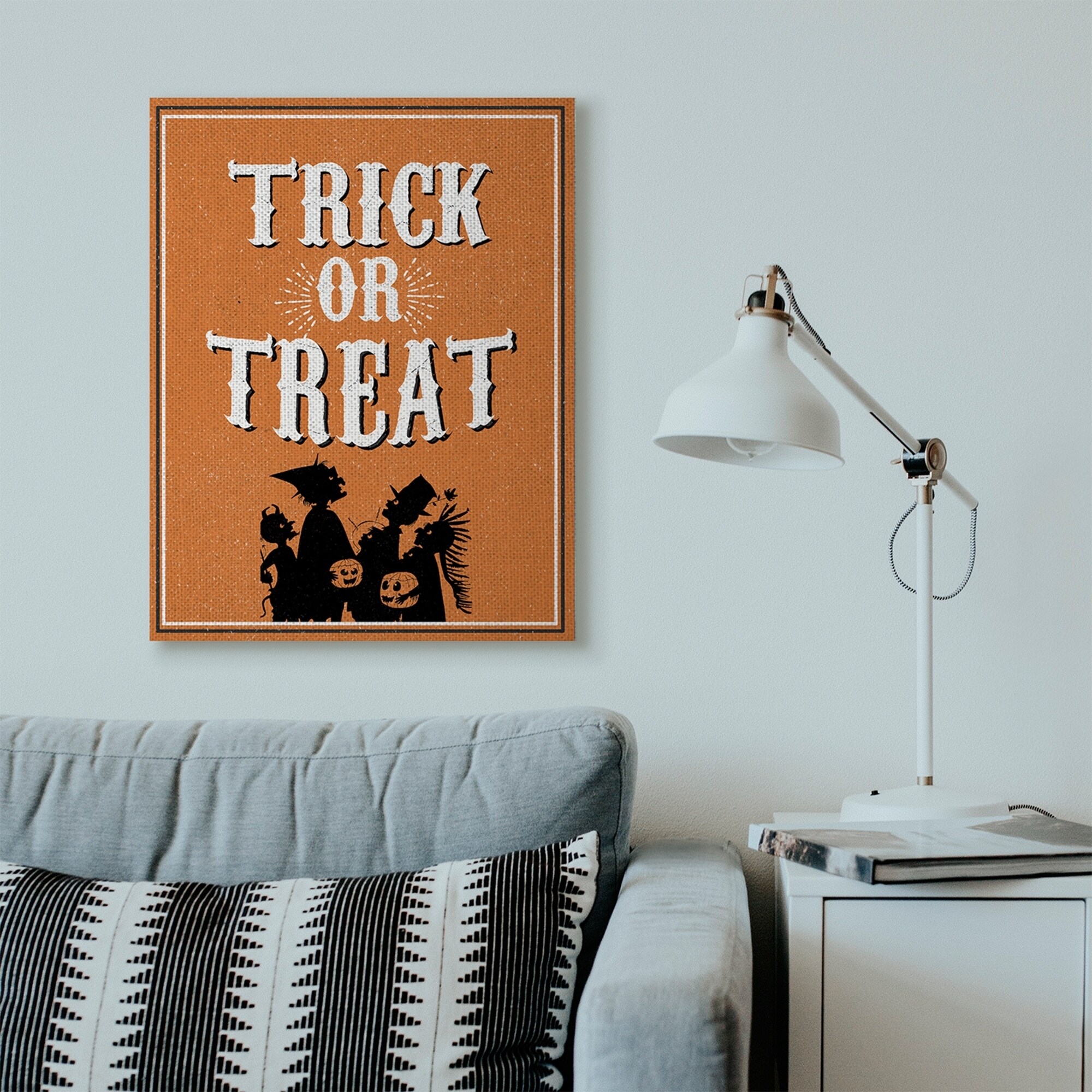 Stupell Industries Trick Or Treat Orange White Cartoon Holiday Word Design Canvas Wall Art