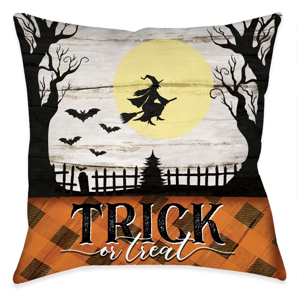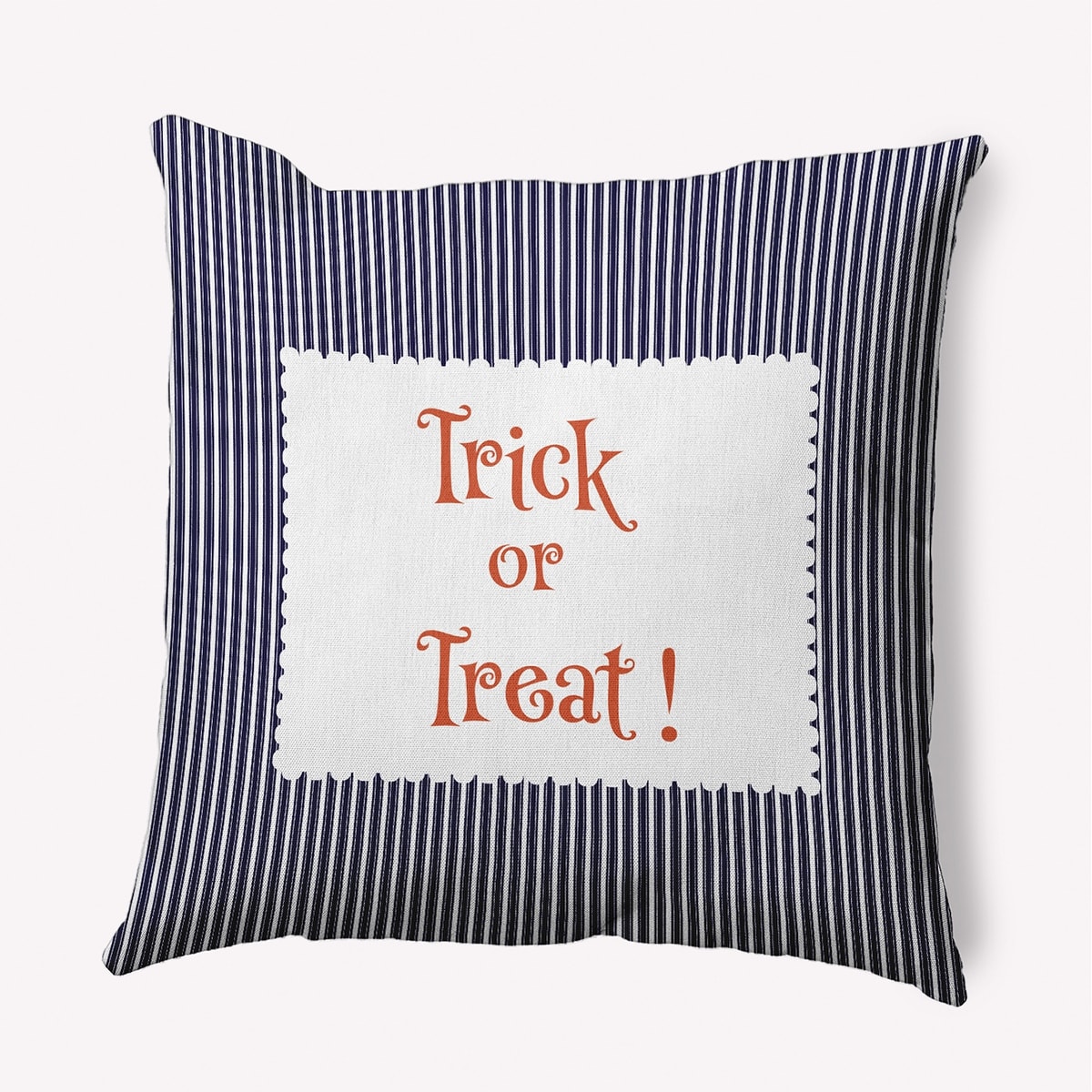 Halloween Trick or Treat Ticking Indoor/Outdoor Throw Pillow