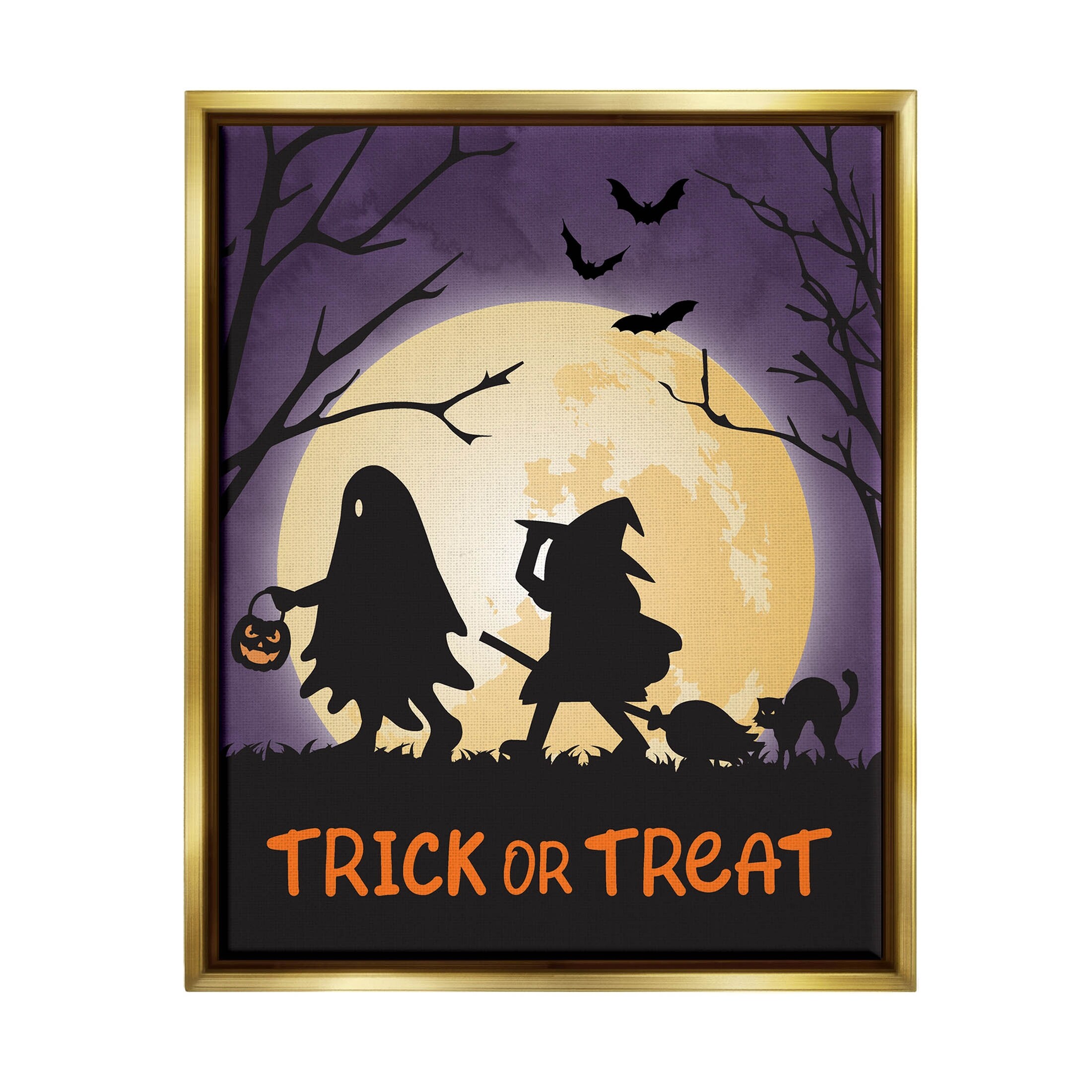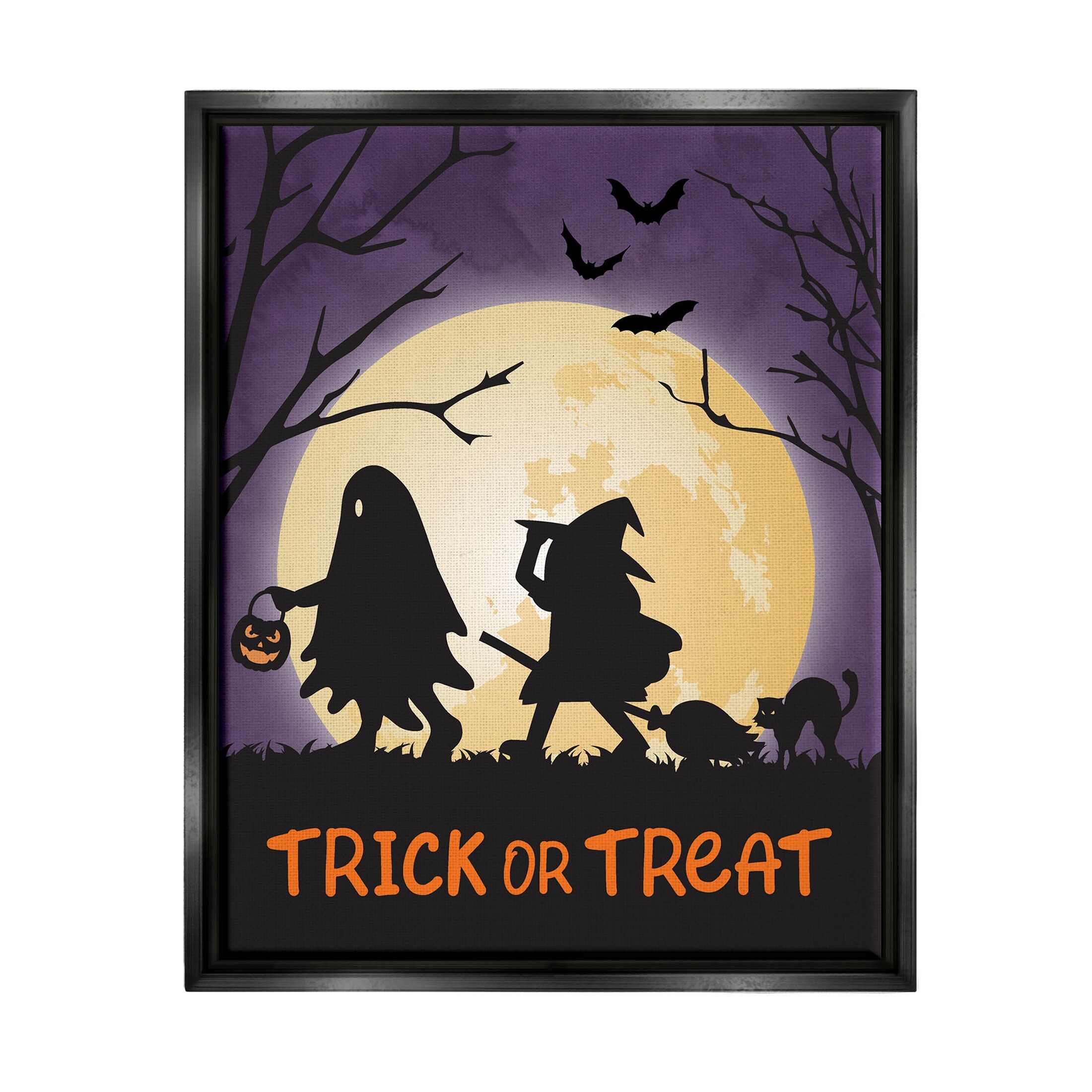 Stupell Trick Or Treat Halloween Silhouettes Framed Floater Canvas Wall Art, Design by Linda Birtel