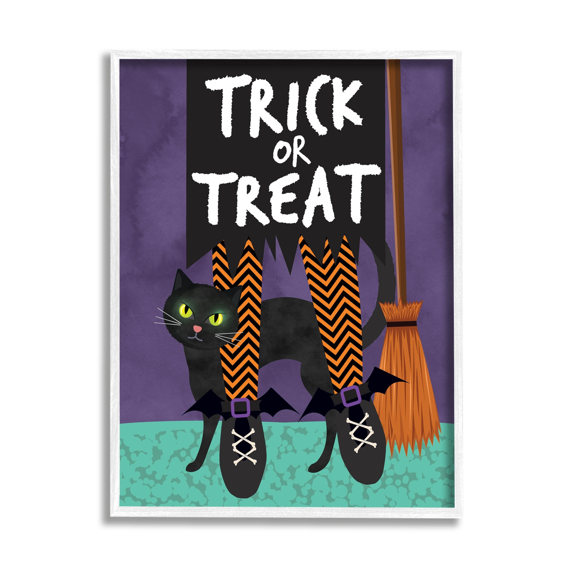 Stupell Industries Trick or Treat Cat & Witch Framed Giclee Art, Design by Linda Birtel