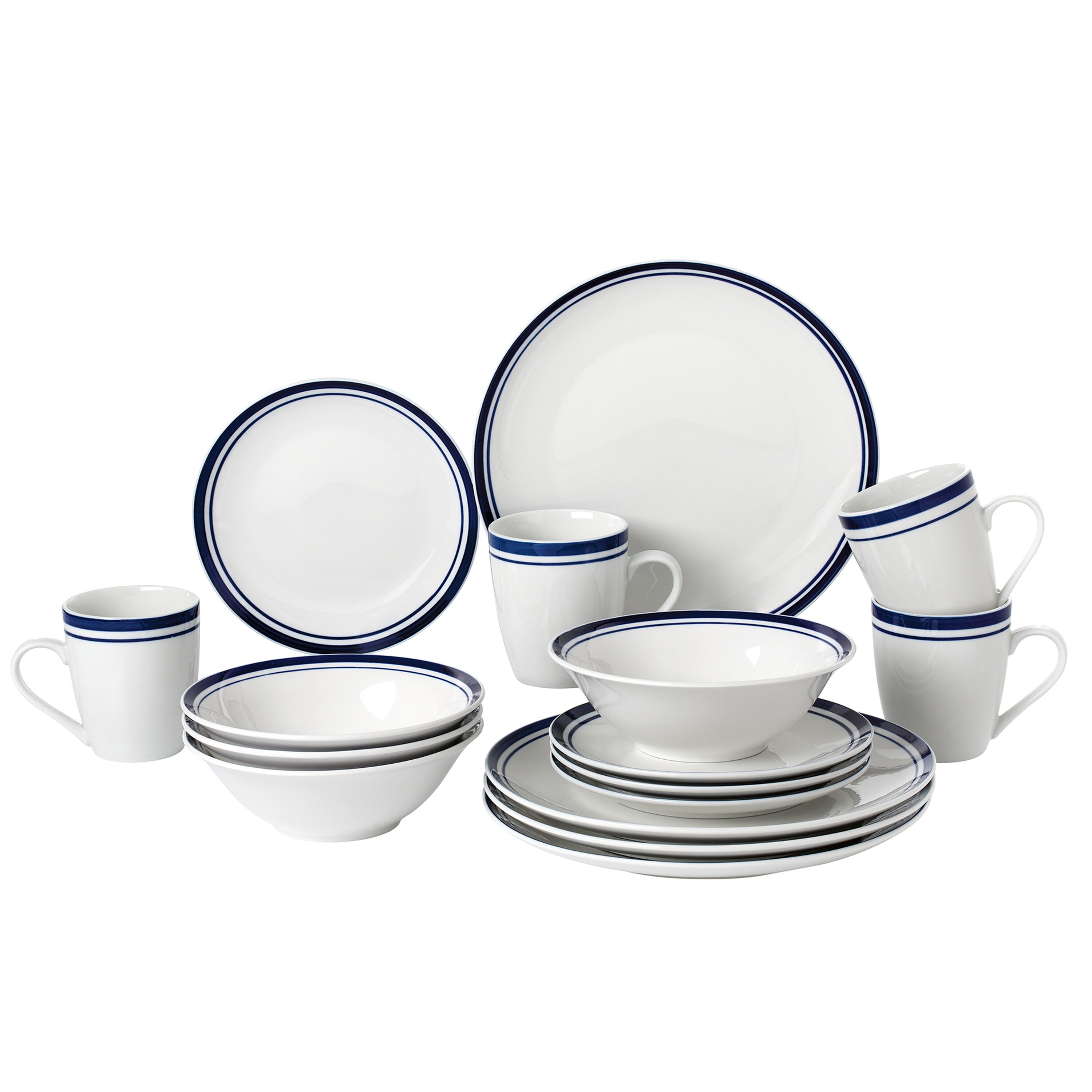 Lorren Home Trends 16 Piece Blue Stripe Porcelain Dinnerware Set