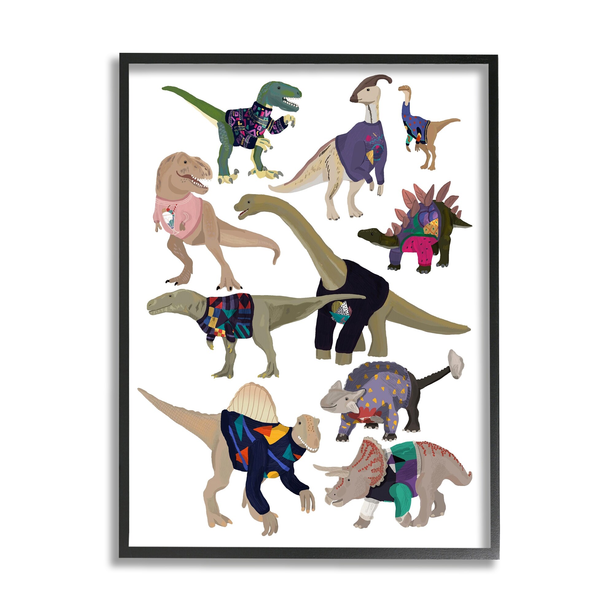 Stupell Quirky Sweater Trend Dinosaurs Vintage Style Fashion Framed Wall Art - Tan