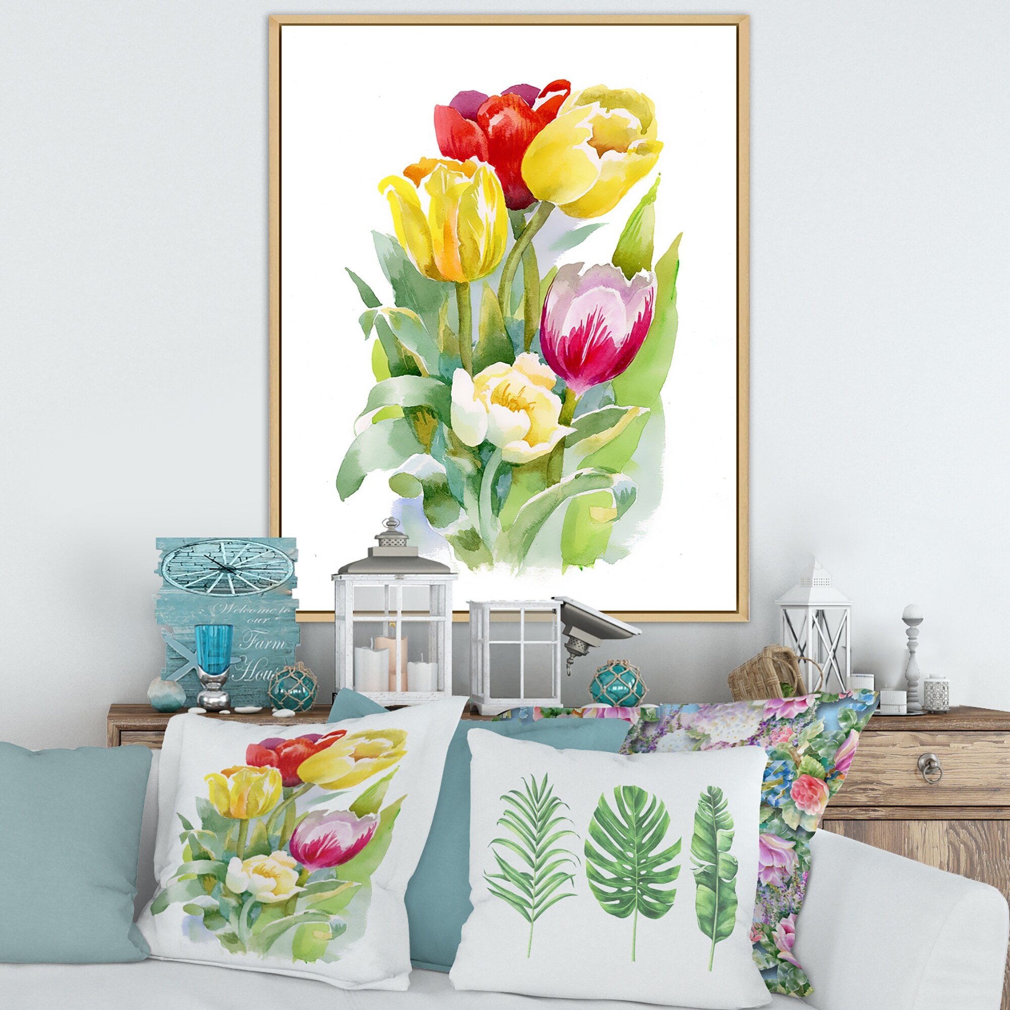 Designart "Tulips Fields of Color III" Tulips Framed Canvas Prints