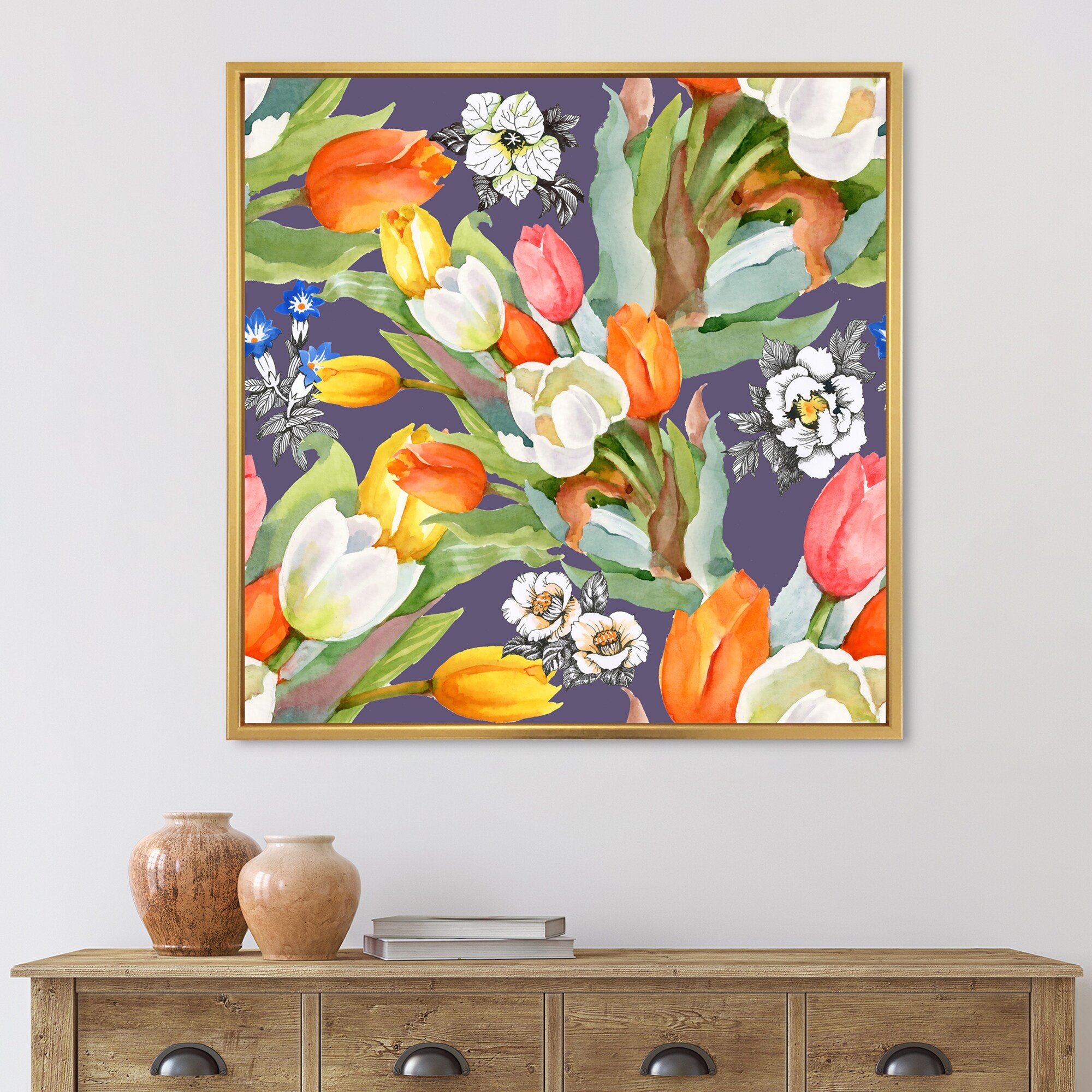 Designart "Bouquet Of Tulip And Forget-Me-Not" Traditional Framed Art Print