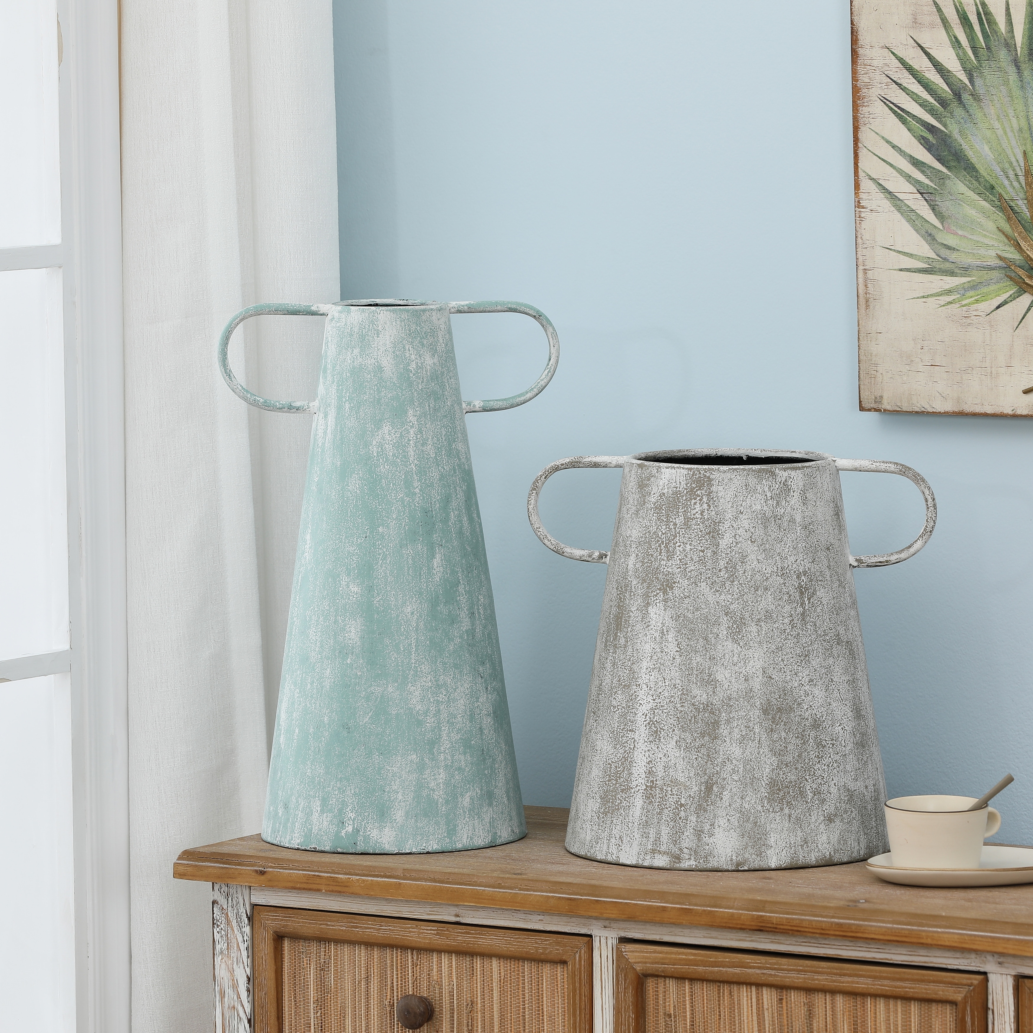 Farmhouse Blue and Grey Metal Vases (Set of 2)