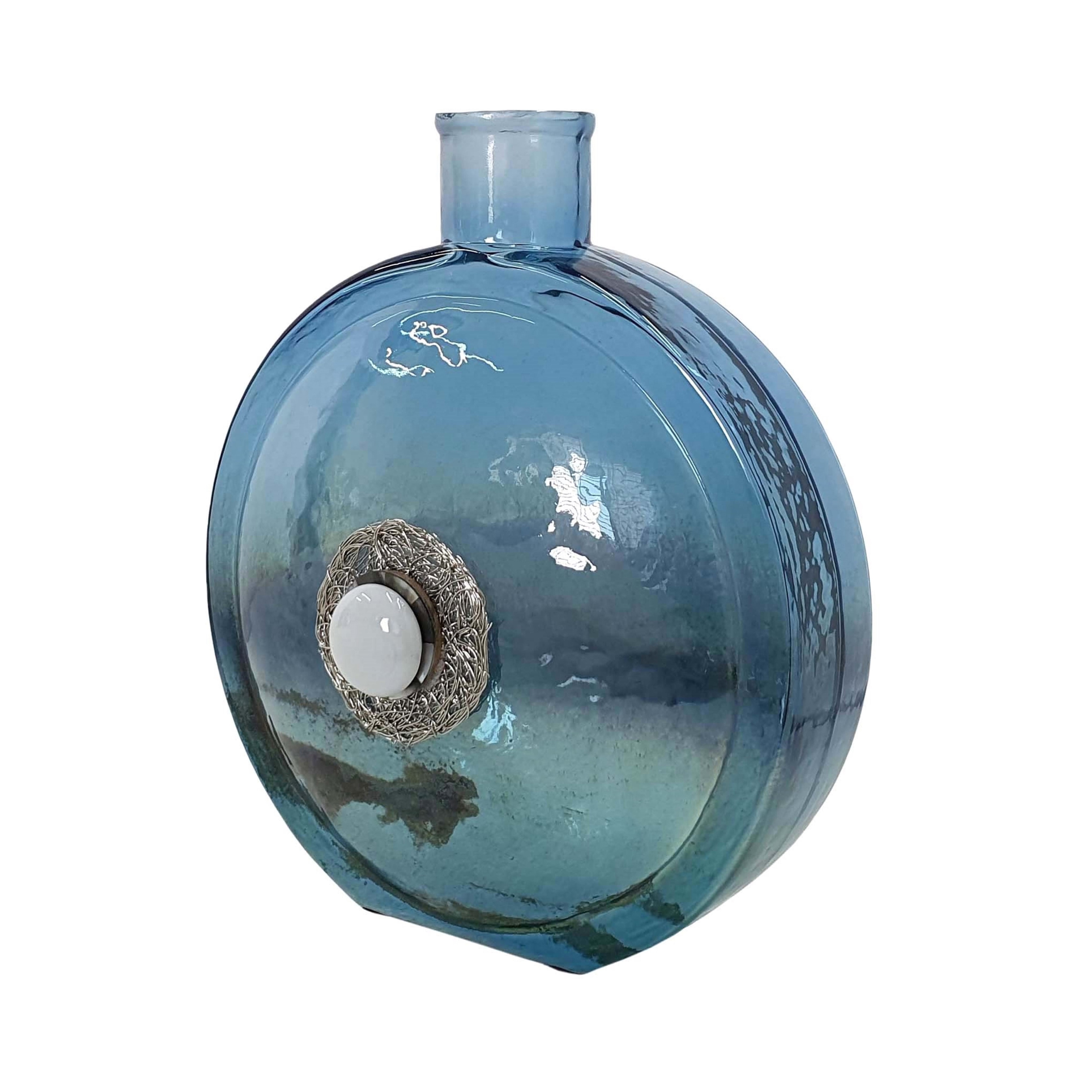 A&B Home Eliana Glass Vase with Iron and Stone Motif - Blue/Nickel