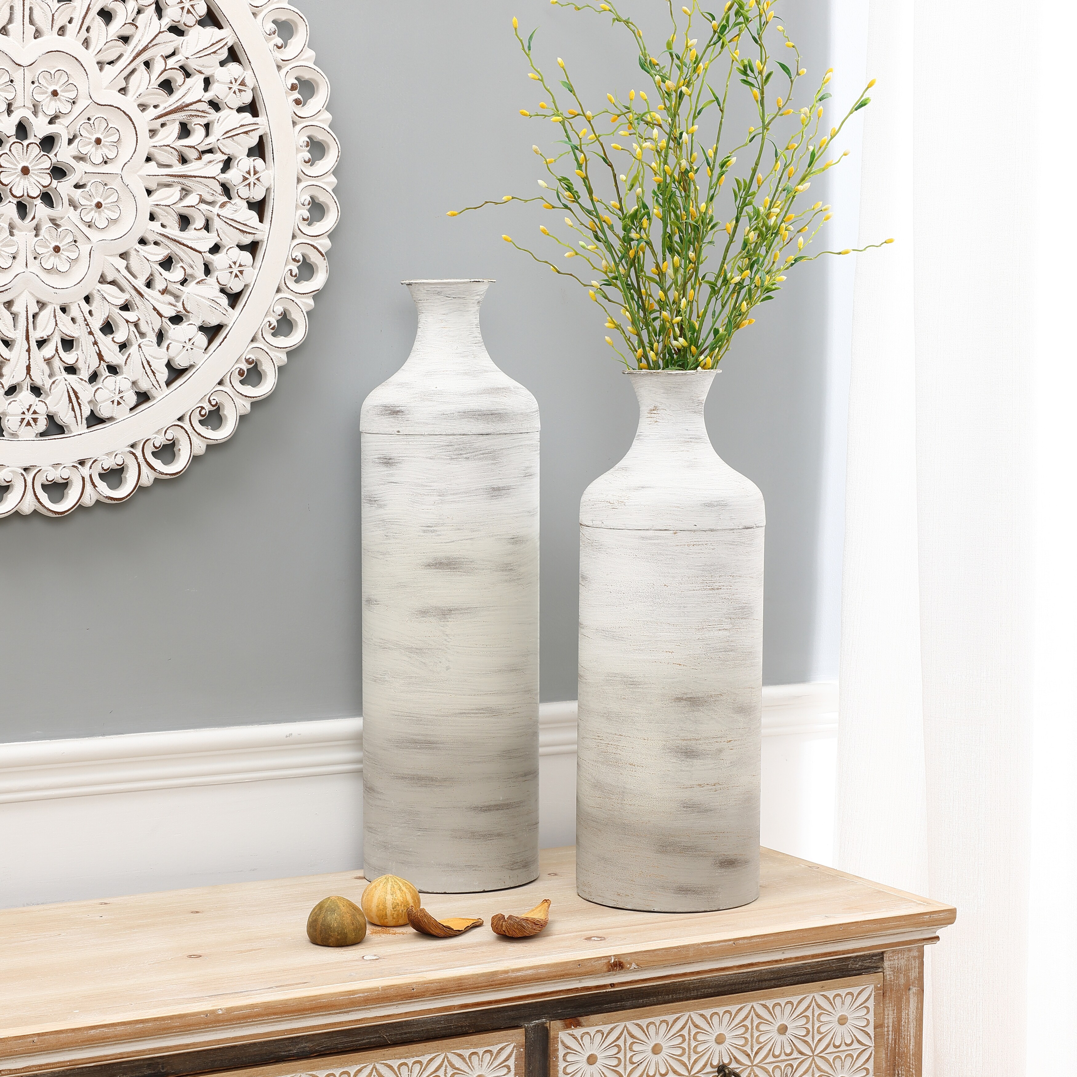 Distressed Grey and White Metal Bottle Vase (Set of 2)