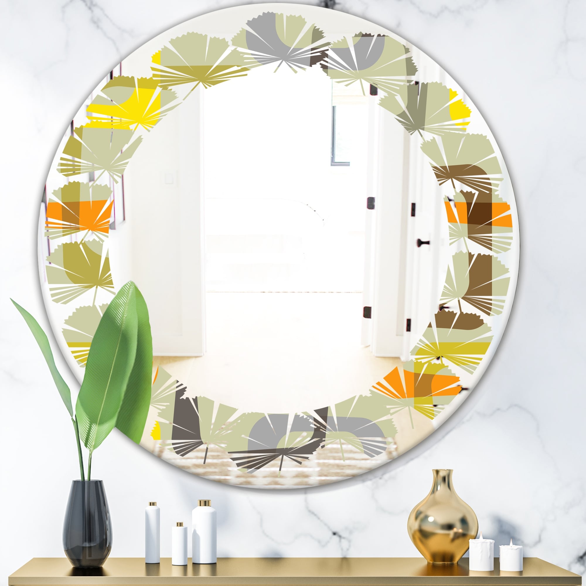 Designart 'Retro Square Design VII' Printed Modern Round or Oval Wall Mirror - Leaves