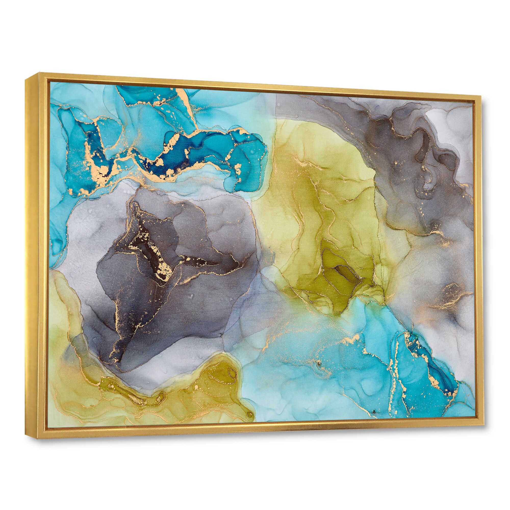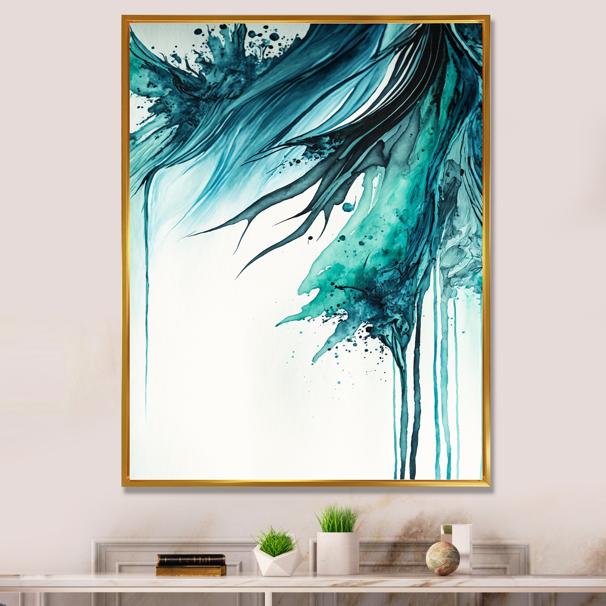 Designart "Tropical Turquoise Joyfulness VII" Abstract Liquid Ink Framed Canvas Wall Art Print