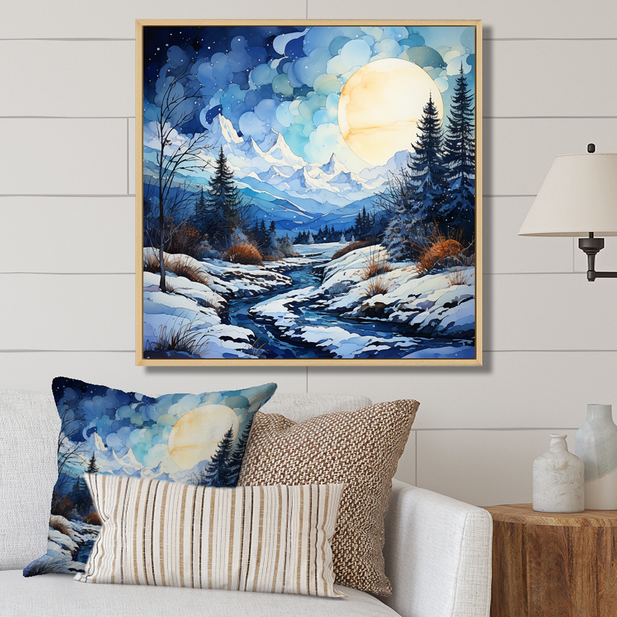 Designart "Winter Snowy Peaks VII" Winter Landscape Framed Canvas Art Print