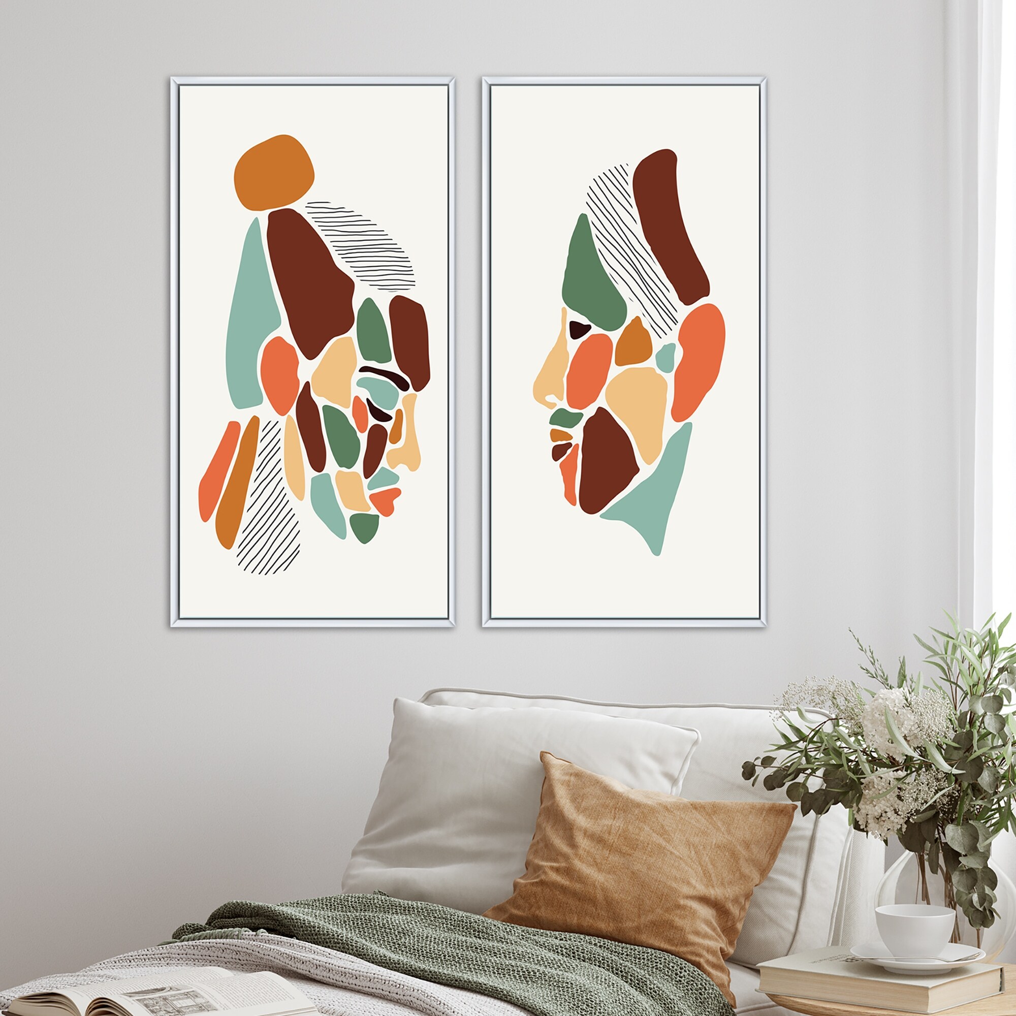 Designart "Abstract Minimalist Woman Portrait VII" Abstract Framed Art Set of 2 Pieces