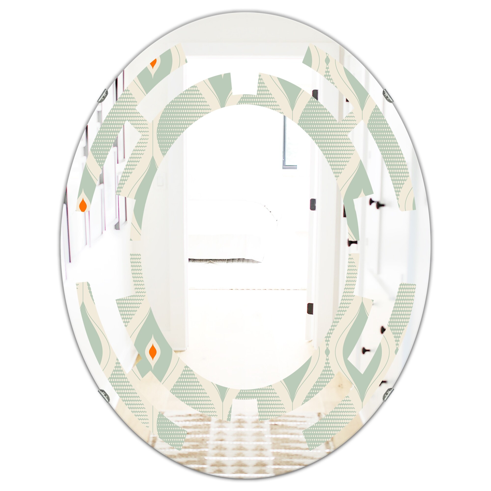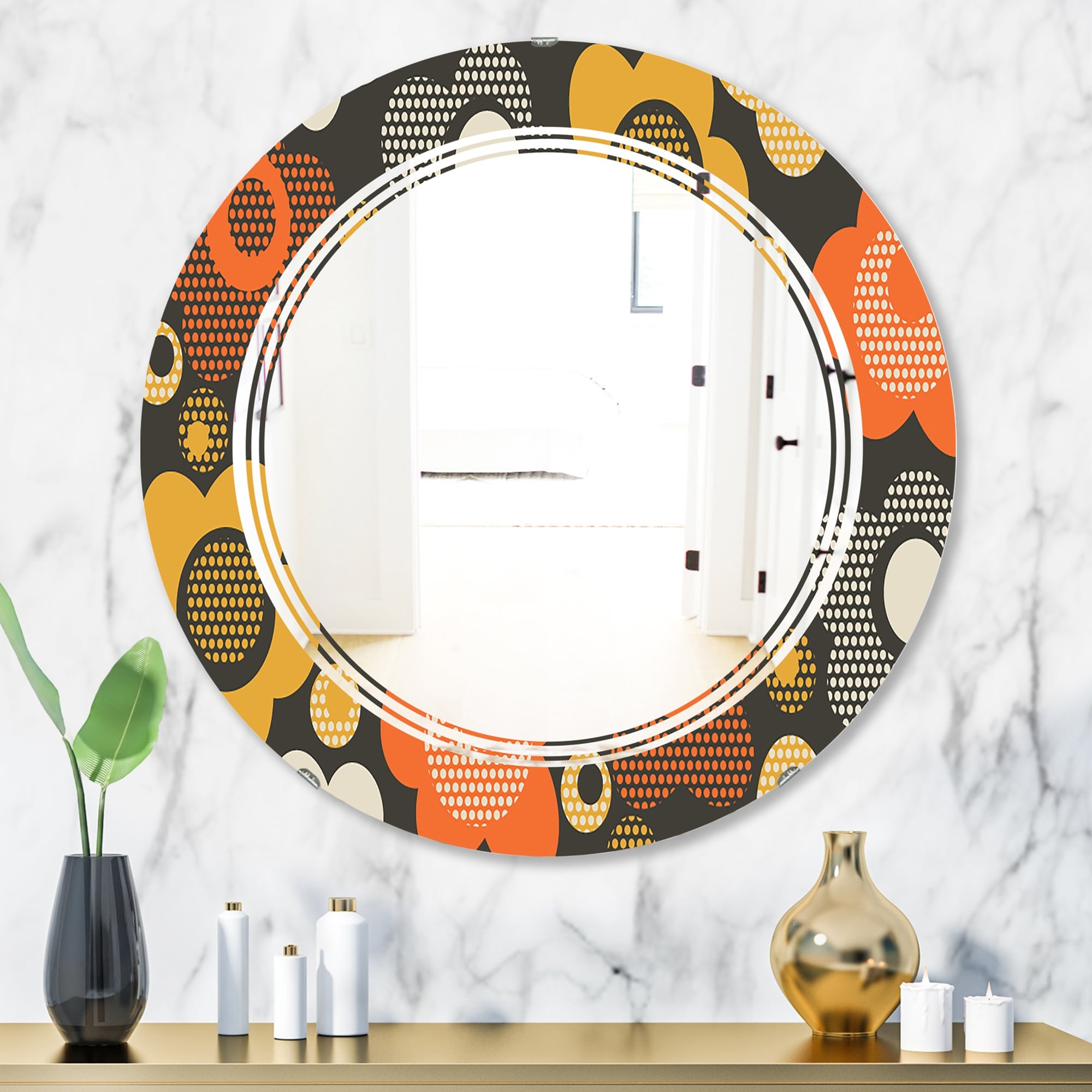 Designart 'Retro Floral Pattern VII' Printed Modern Round or Oval Wall Mirror - Triple C