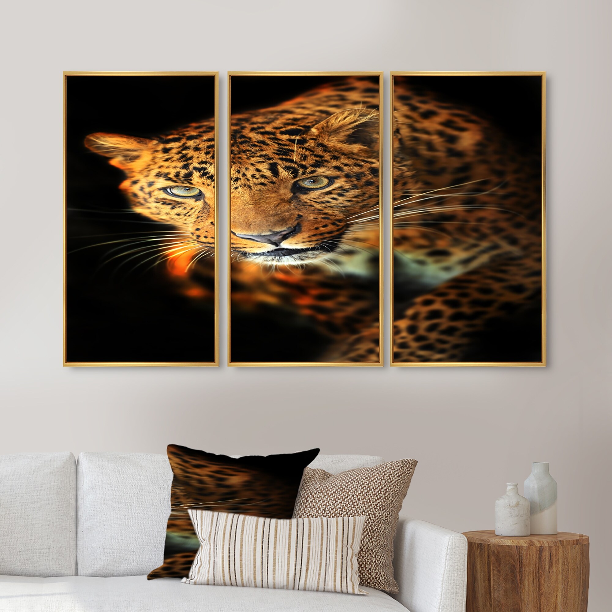 Designart "Portrait Of a Leopard VII" Traditional Framed Canvas Wall Art Print Set of 3 - 4 Colors of Frames