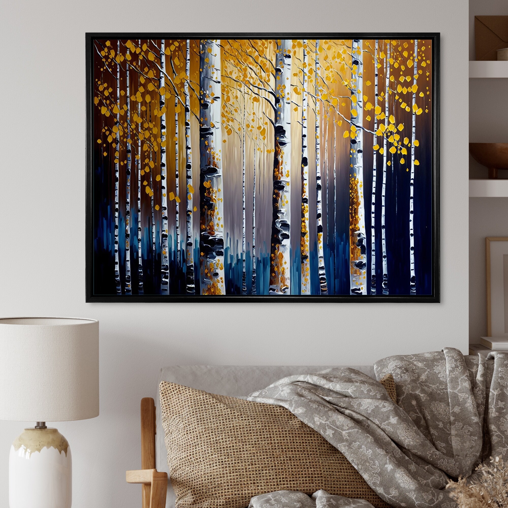 Designart "Into A Golden Birch Forest VII" Landscape Framed Canvas Art Print