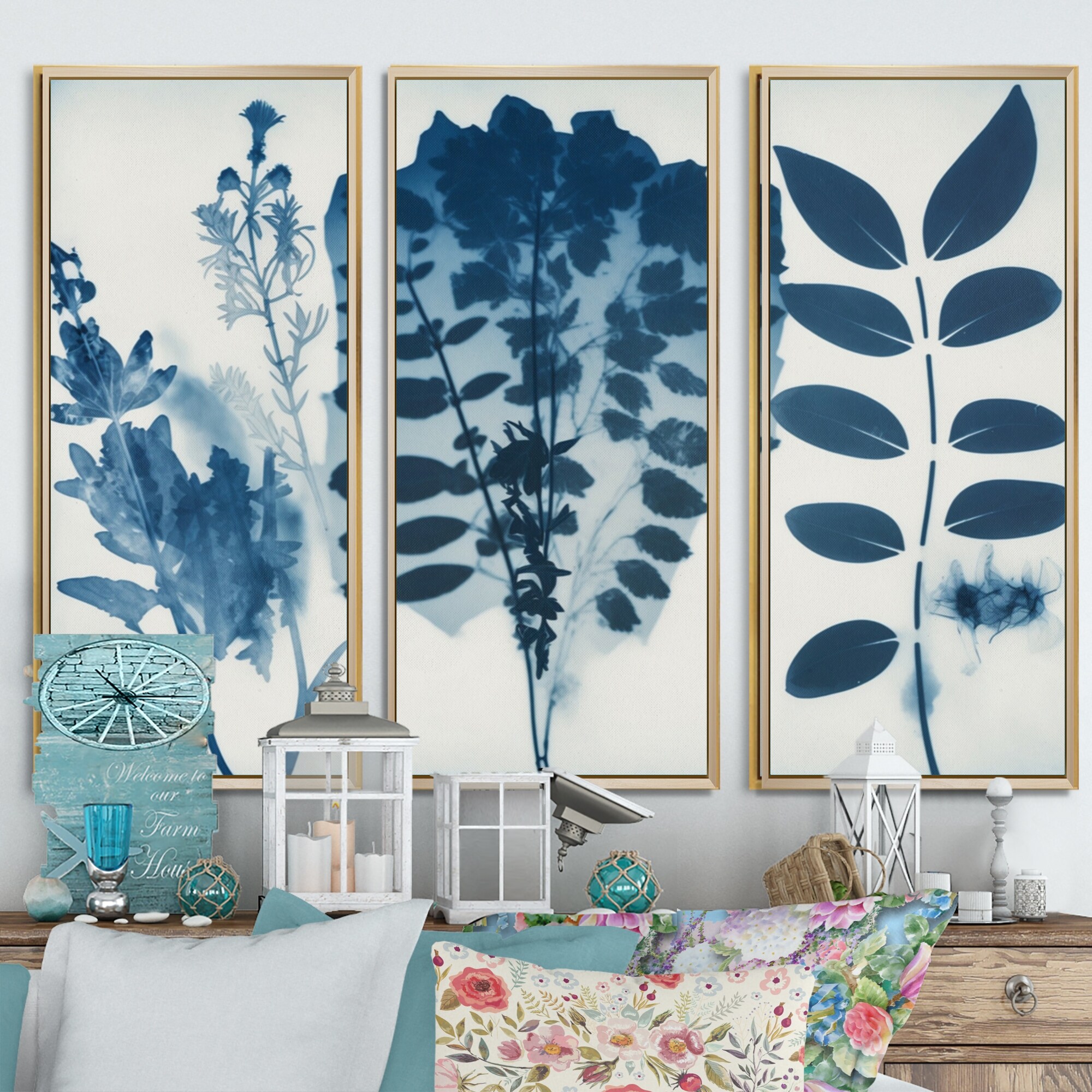 Designart "Retro Wildflowers in Shades of Blue VII" Floral Framed Canvas Wall Art Print - 3 Panels