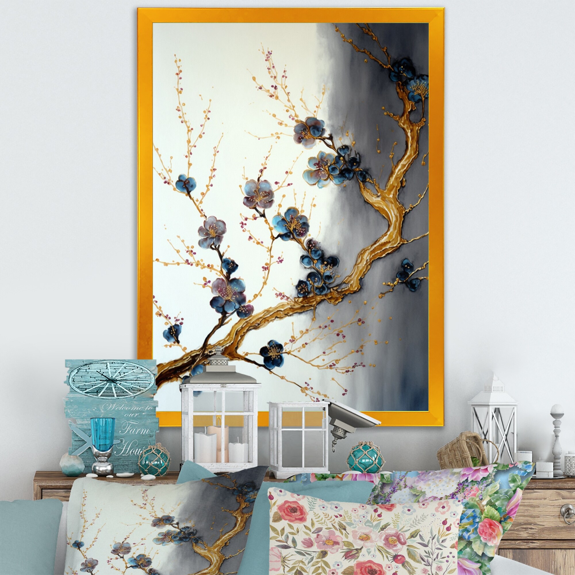 Designart "Blue Cherry Blossom Branch VII" Modern Framed Art Print