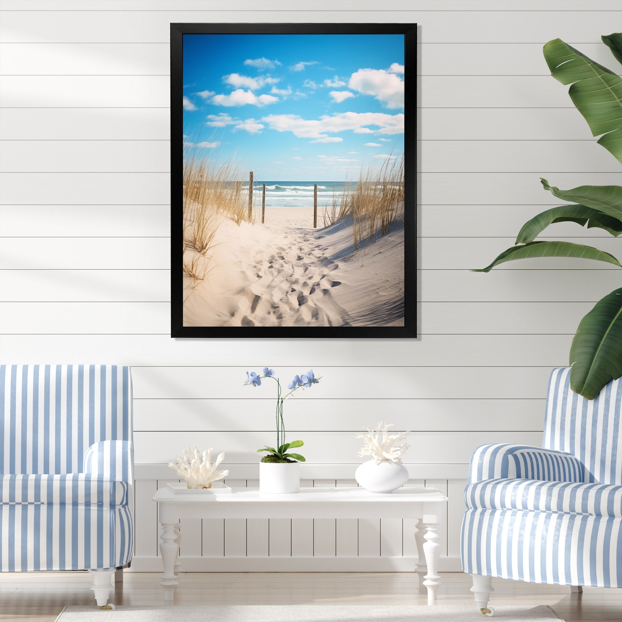 Designart "Bath To the Ocean I" Coastal Beach Sand Framed Canvas Wall Art