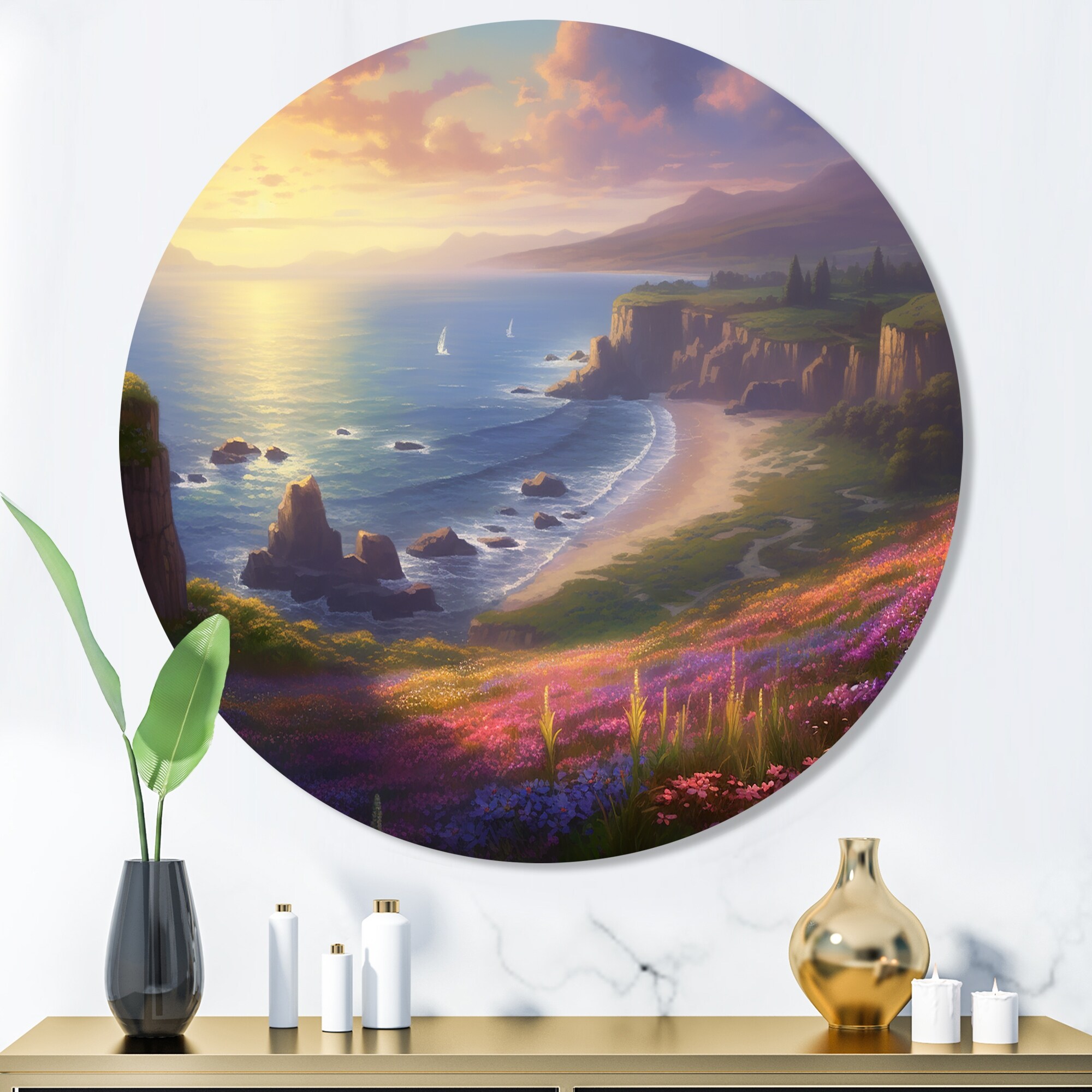 Designart "Seaside Paradise II" Modern Landscape Beach Metal Round Wall Art