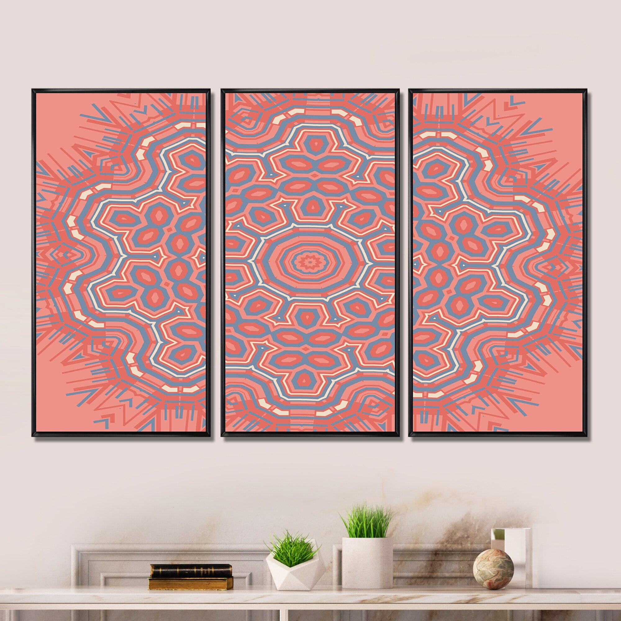 Designart "Kaleidoscope Geometric Mandala" Modern Framed Canvas Wall Art Set of 3 - 4 Colors of Frames