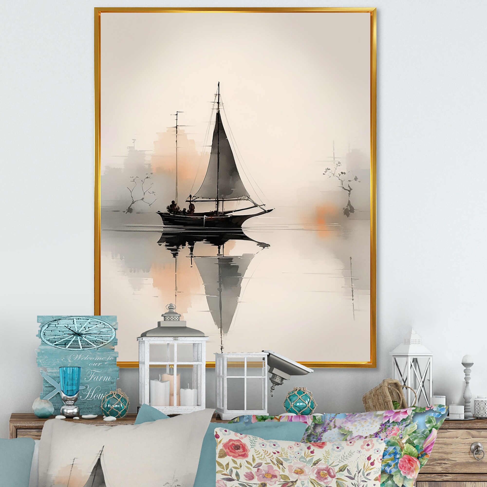 Designart "Asian Art Sailboat Sumi V" Asian Art Framed Wall Art Prints