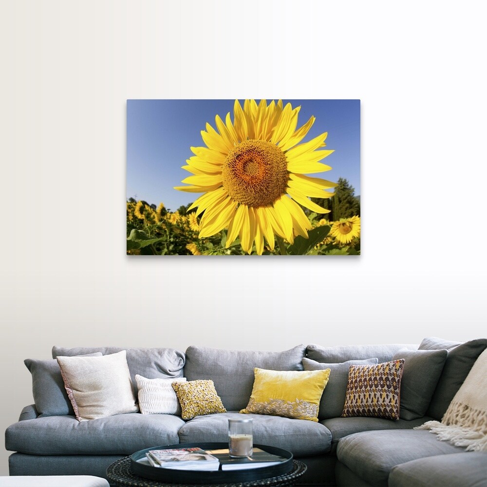 "Fields of sunflowers in the early morning sunshine around the town of Cetona," Canvas Wall Art