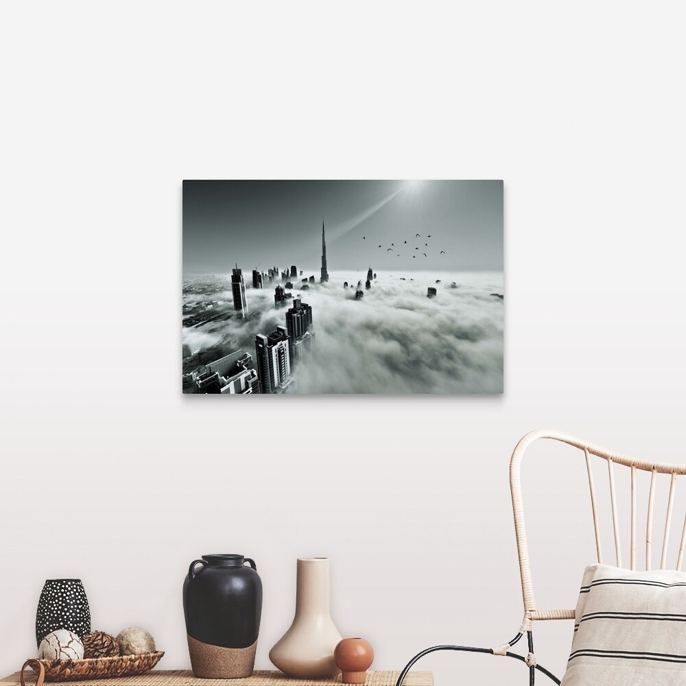 ArtWall Silvia Vassileva 'Downtown I Indigo and Cream' Gallery-wrapped Floating Frame Canvas Wall Art