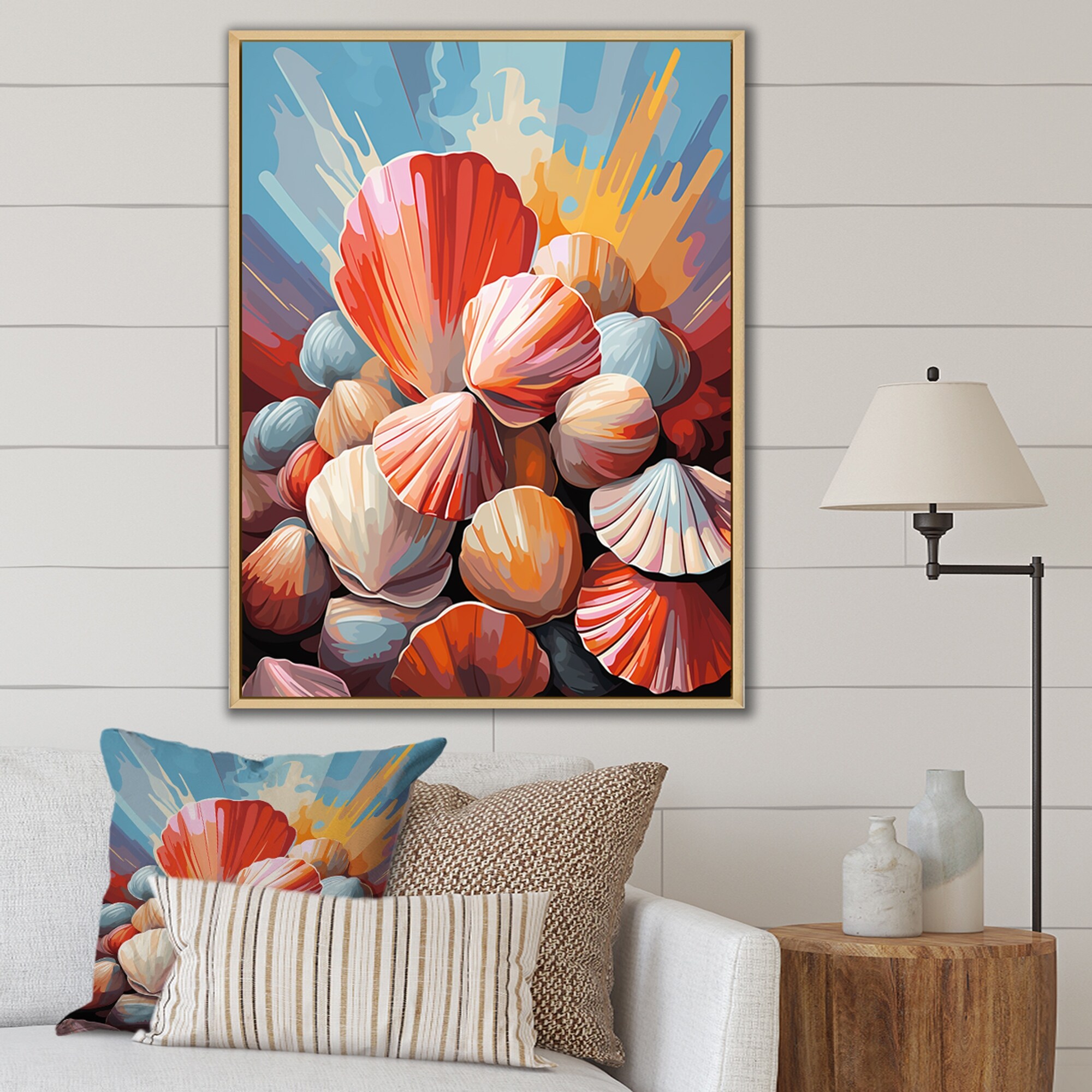 Designart "Seashells Pop Art Collage" Seashell Framed Wall Art Prints