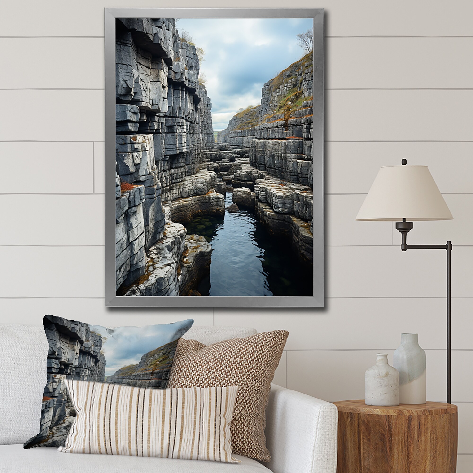 Designart "Ireland The Burren Clif II" Ireland Framed Canvas Wall Art