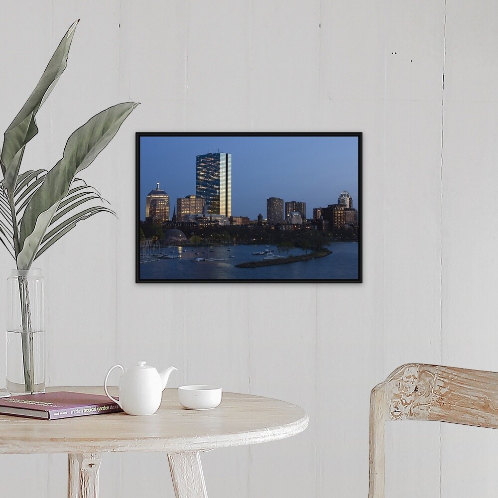 "Buildings at the waterfront, John Hancock Tower, Boston, Massachusetts" Black Float Frame Canvas Art