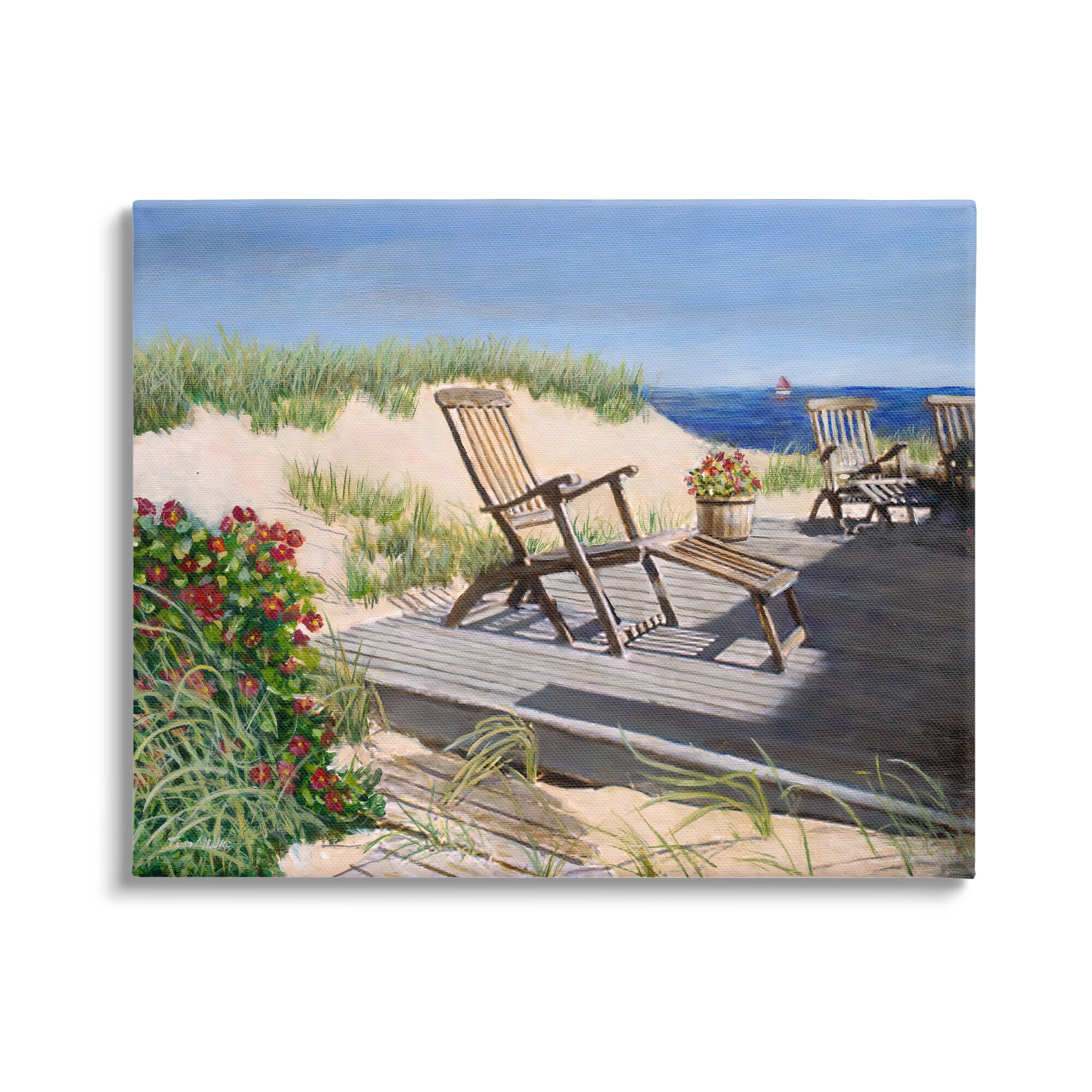 Stupell Industries Relaxing Waterfront Boardwalk Beach Chairs Summer Scene Canvas Wall Art, Design by Tom Mielko